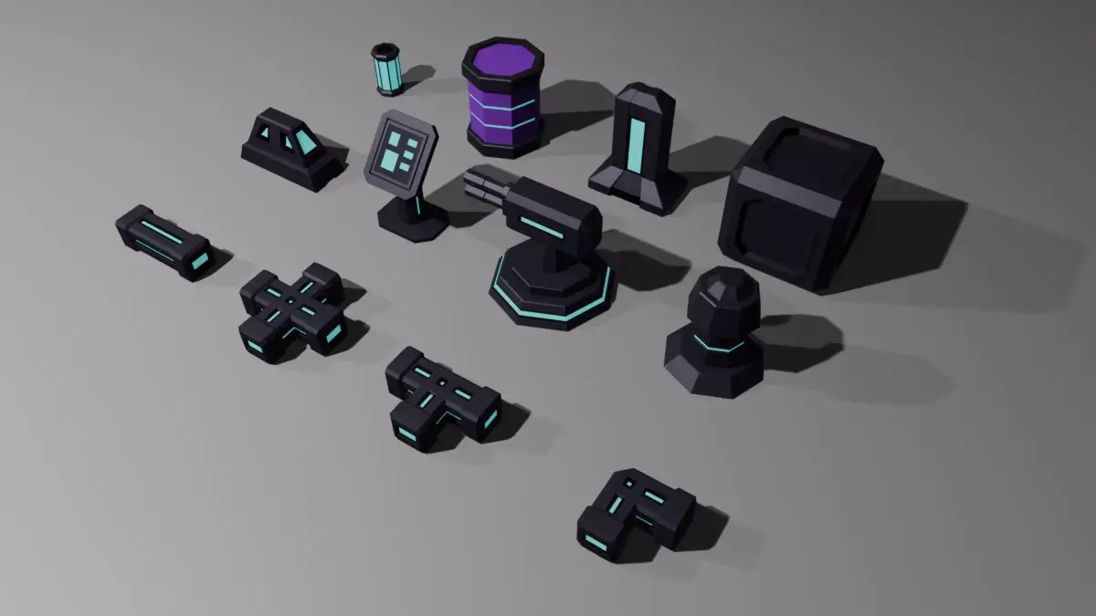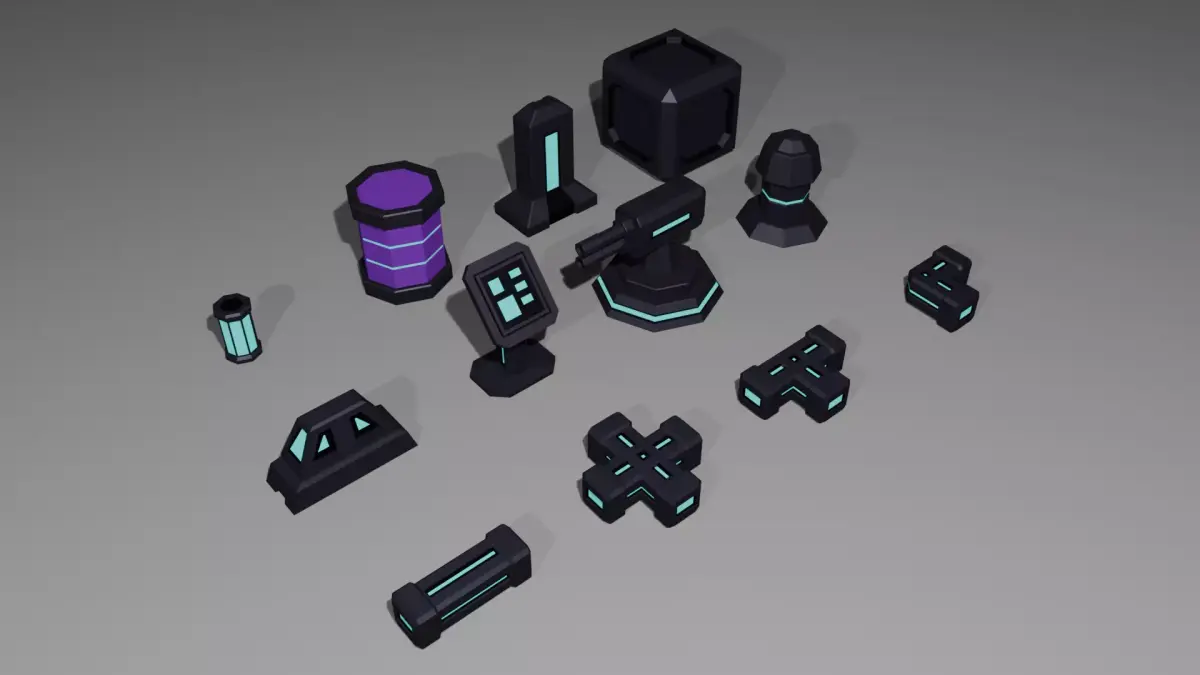 Clean and readable low-poly sci-fi styleConsistent OZEA modular sci-fi visual languageTechnical props and industrial elementsOptimized models ideal for real-time gamesPerfect for stations, machinery rooms and industrial environmentsNo textures used (simple color materials only)