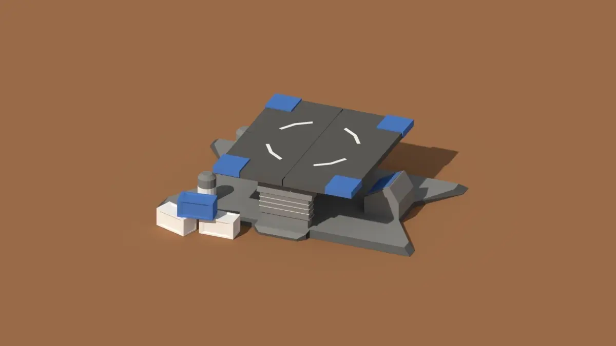 A loading pad (Can also be used as a launching pad) model with a terminal and boxes near it. Feel free to separate the pieces and use them individually.