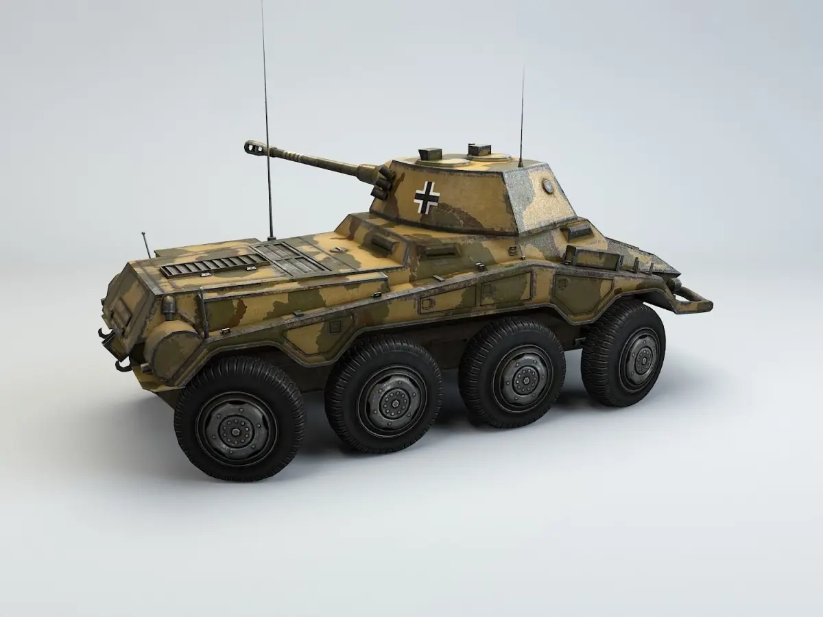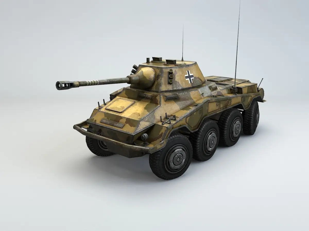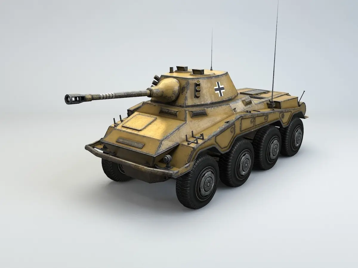 Low Poly model of WW2 Sd.Kfz 234/2 Puma armored car.