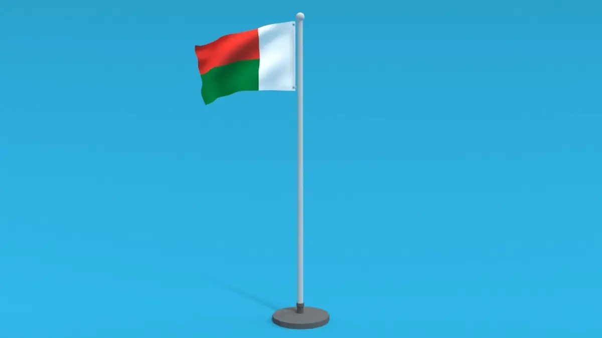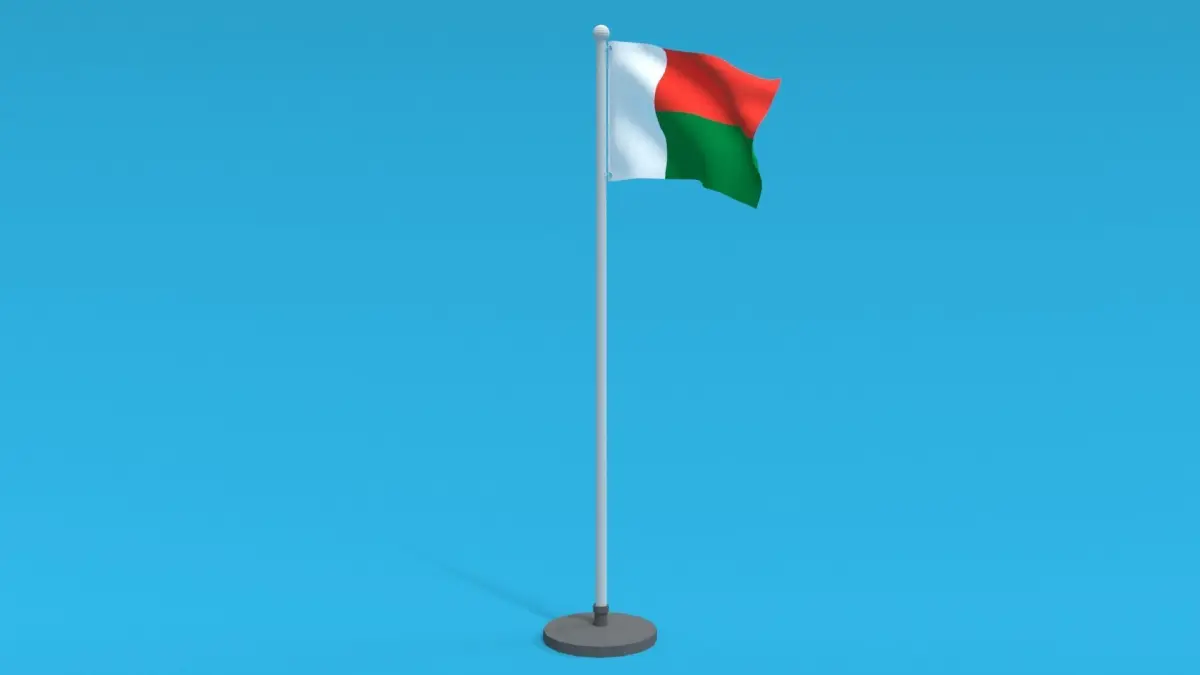 This is a low poly 3D model of an animated flag of Madagascar. The low poly flag was modeled and prepared for low-poly style renderings, background, general CG visualization presented as 2 meshes with quads only.