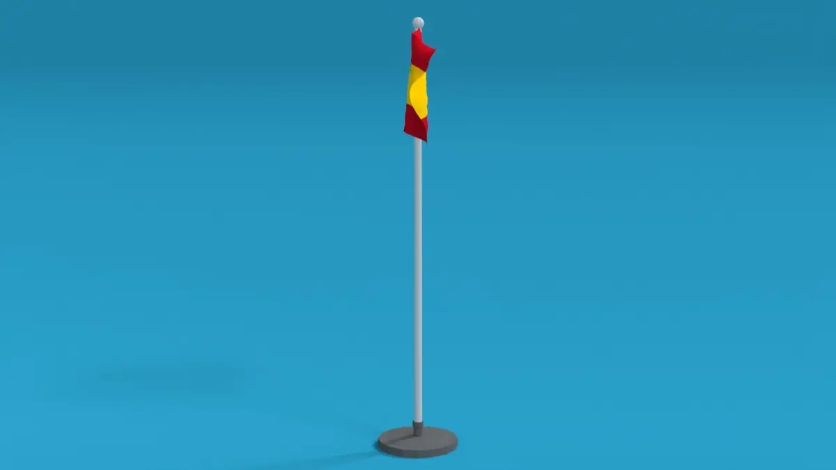 This is a low poly 3D model of an animated flag of Spain. The low poly flag was modeled and prepared for low-poly style renderings, background, general CG visualization presented as 2 meshes with quads only.