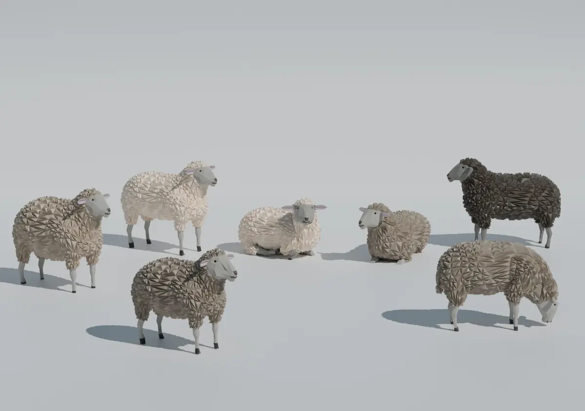 7 cute low poly sheeps for mini gamesvr farmsmetaverse wool productionrendering
