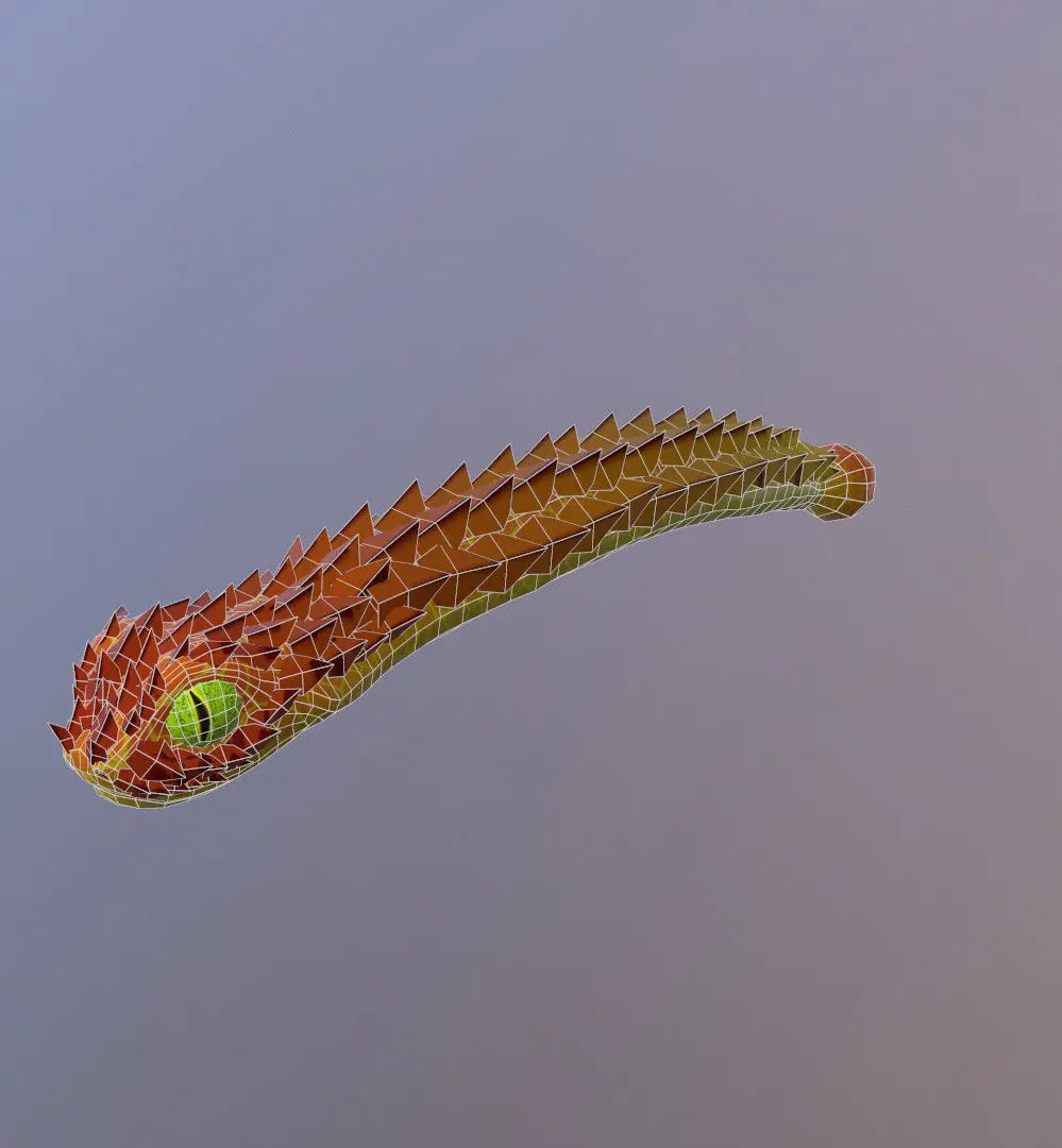 Low poly serpent with defuse texture, includes original PSD. Fully rigged with 3 animations: