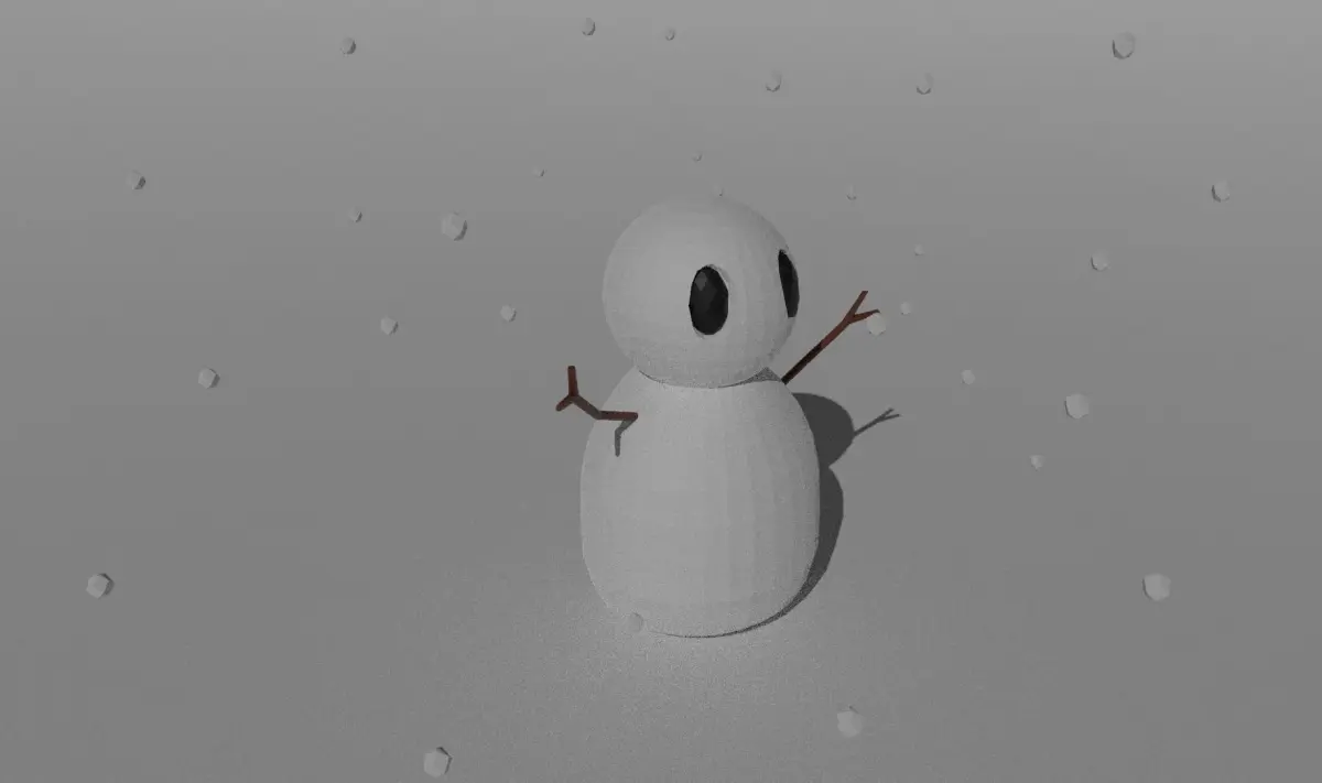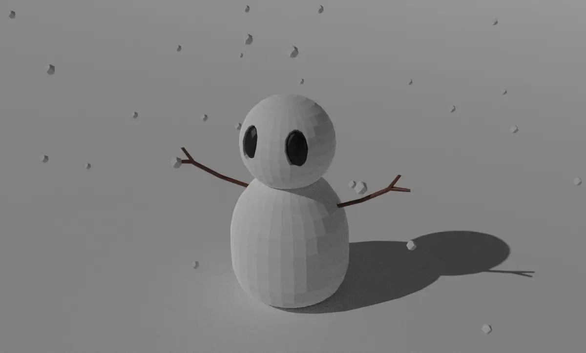 A simple low-poly snowman model for decorating your snowy outdoor scene. Available in .blend, .fbx, .dae, and .obj formats. Snowman arms, eyes, and body are separate meshes that can be removed or moved around.