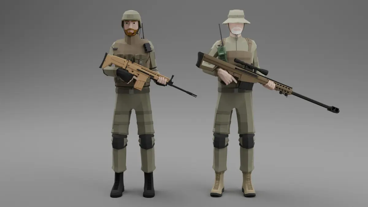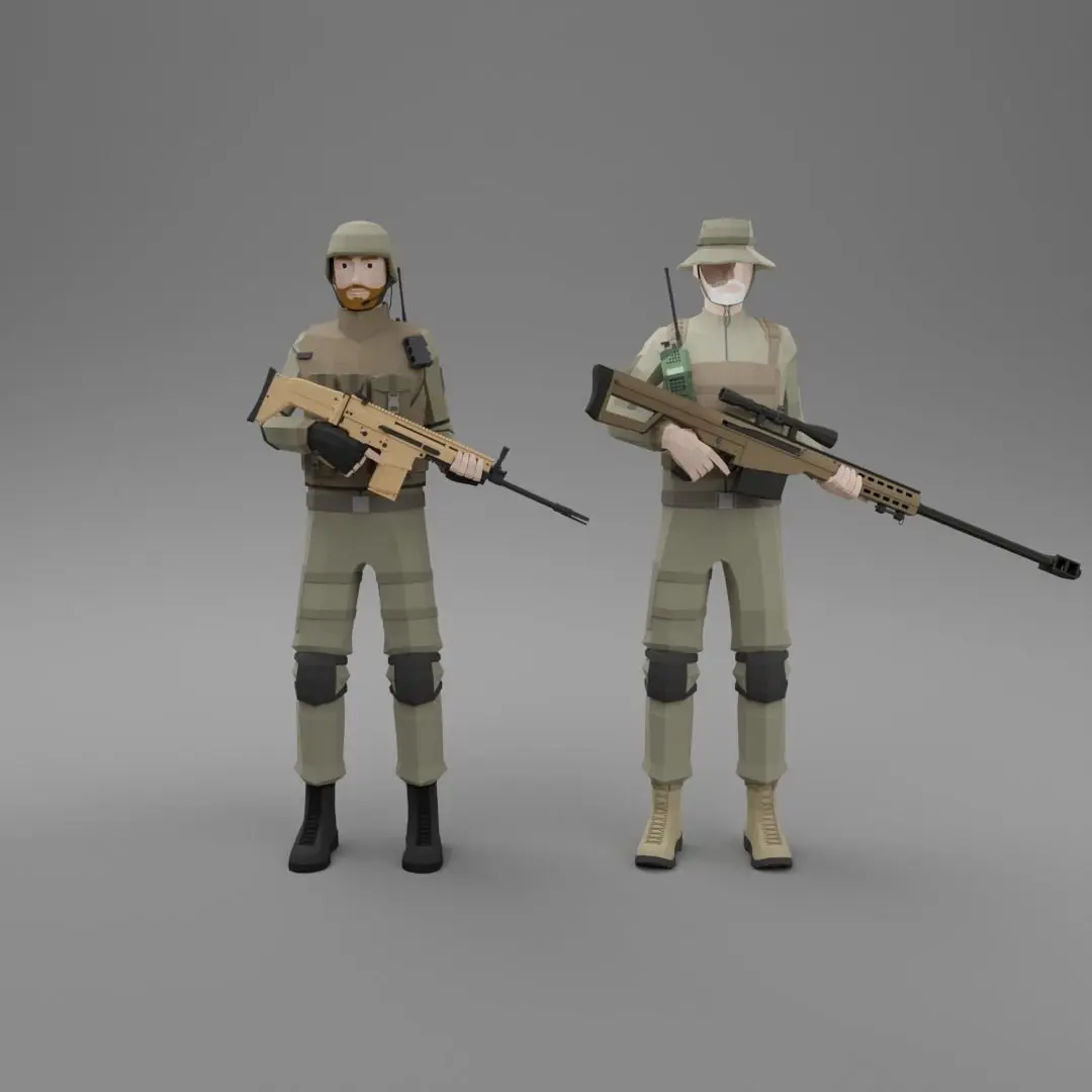 game ready low poly characters made in BLENDER ,low poly soldiers, 3000x3000 color palette, File format: .blend,fbx (for UNITY):