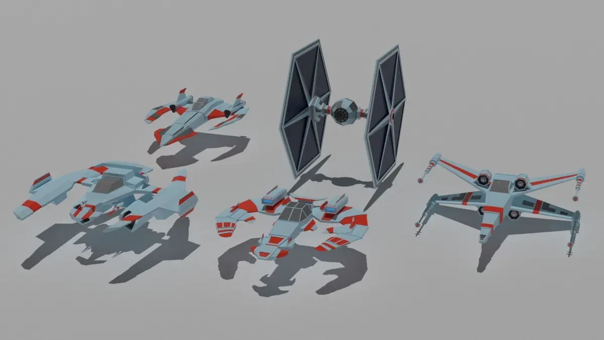Ultra low-poly game-ready collection of spaceships of different sizes in one color