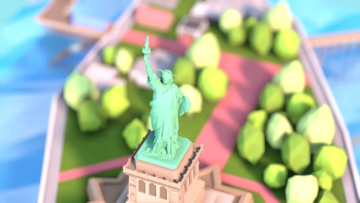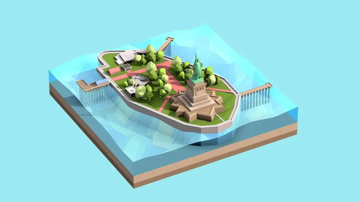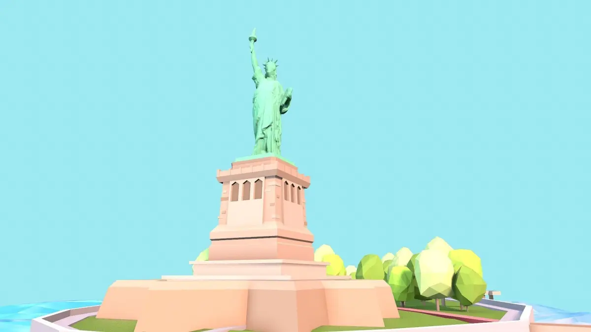 Low poly stylized Statue of Liberty scene. Made with 3Ds max. Game ready.