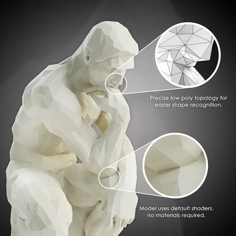 A High-Quality Low Poly 3D model of The Thinker Statue.