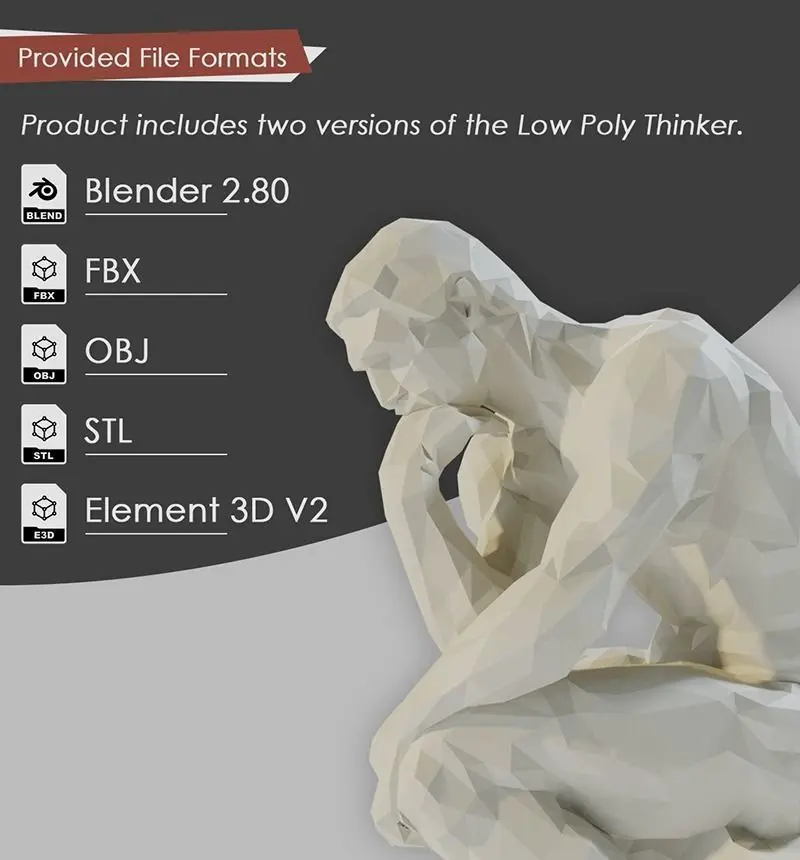 - STL files (includes two low poly versions).