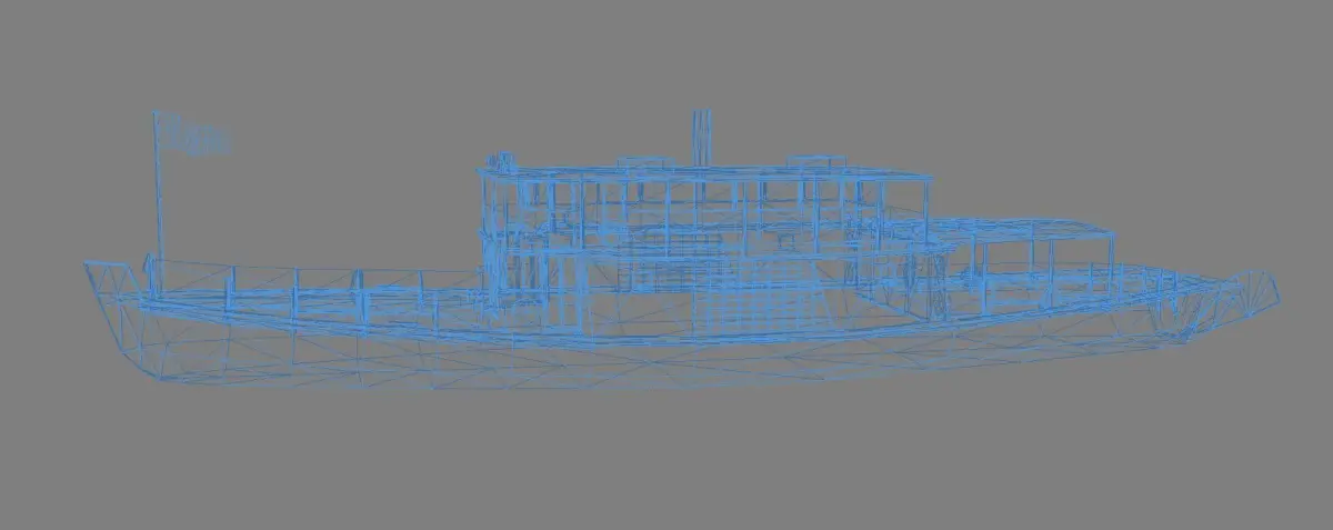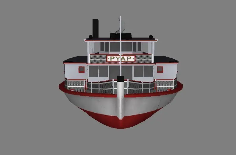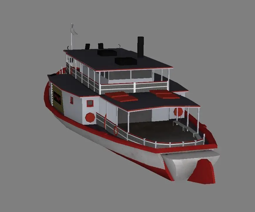 Low polygon 3D model of the PYAP steamboat.Containing the mesh and texture map as seen in the photos.