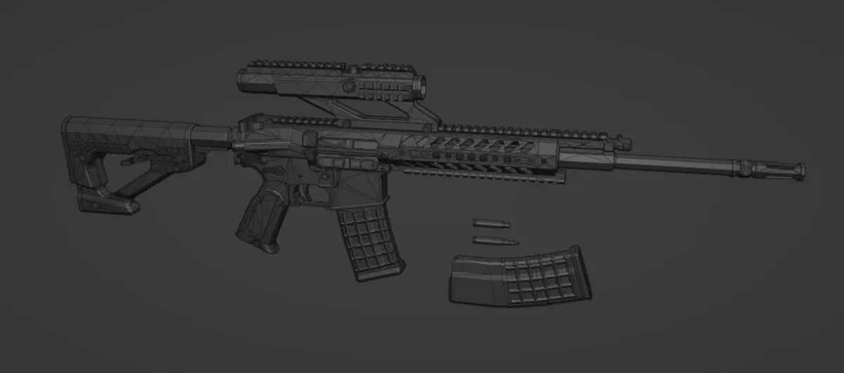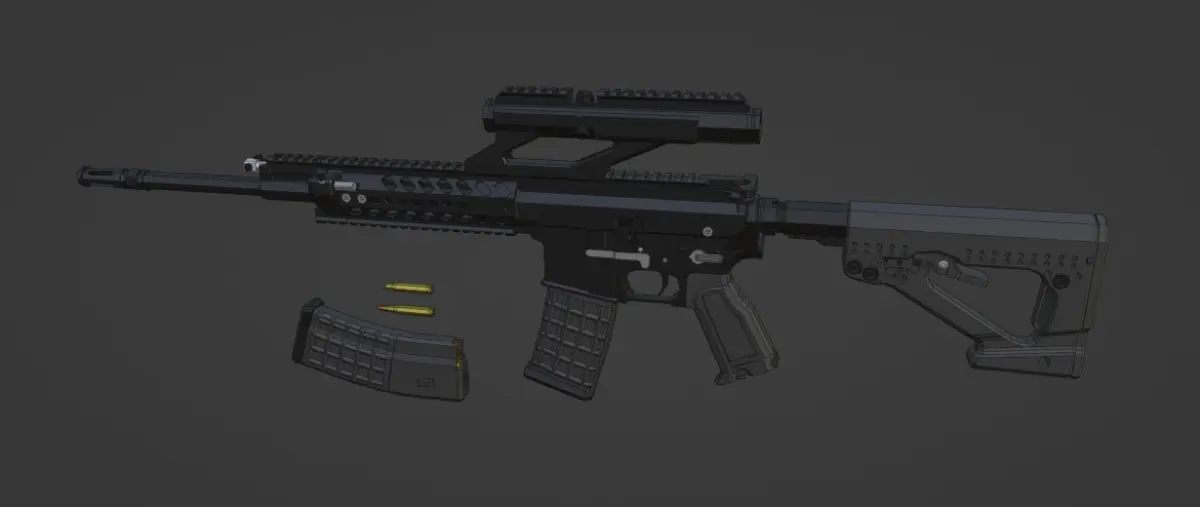 Assault rifle manufactured by Steyr Arms. The cartridge is 5.56x45mm NATO. Short-stroke piston. An interesting detail is the quick-release barrel. Also, the handguard and upper receiver are one piece. The magazine is a copy of AUG magazines but modified for use with AR-15 rifles. Model Info: