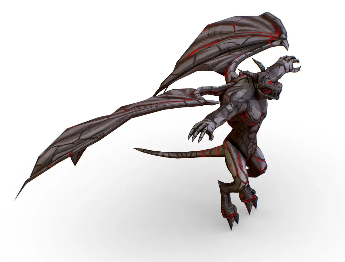 Low Poly Stone Gray Gargoyle Monster