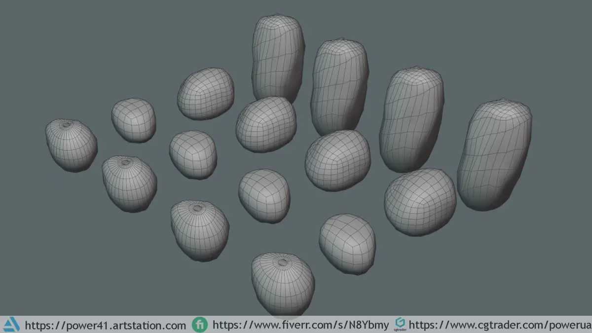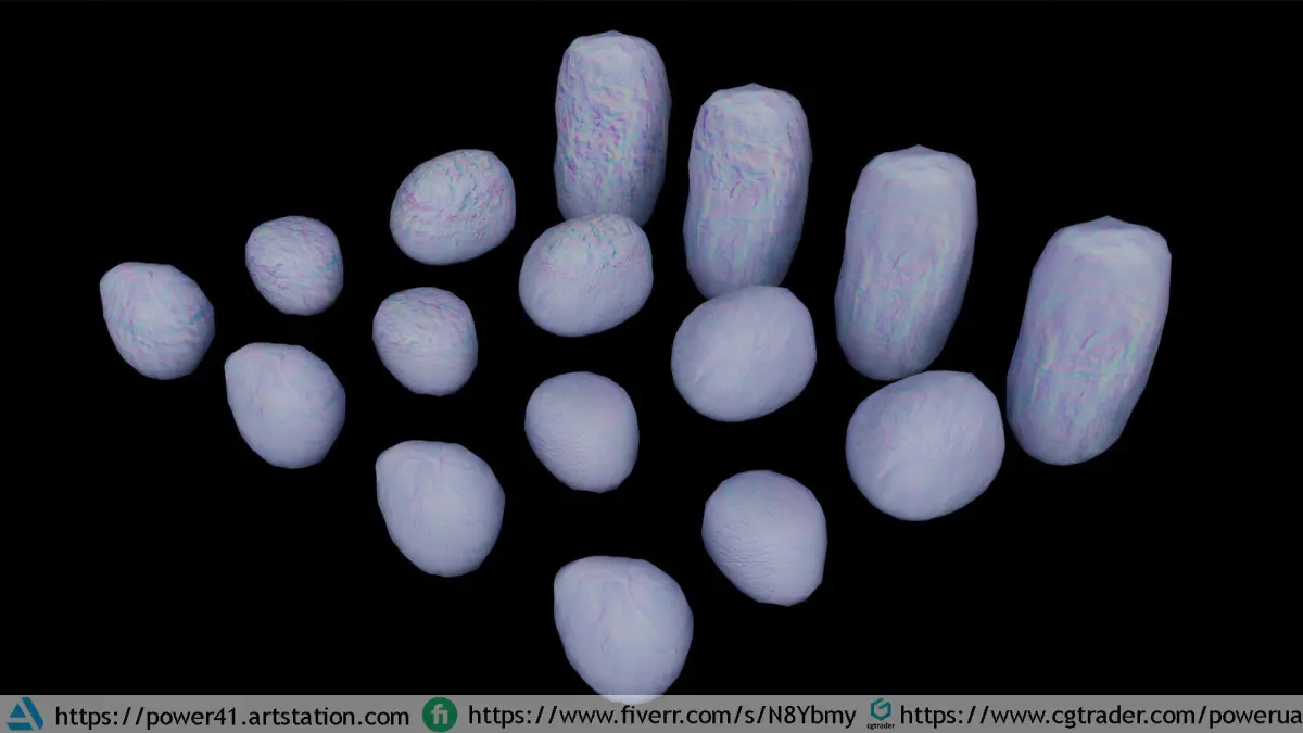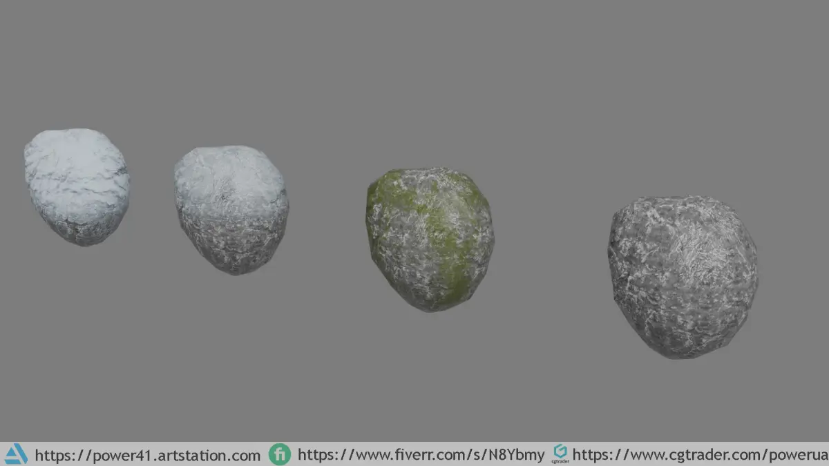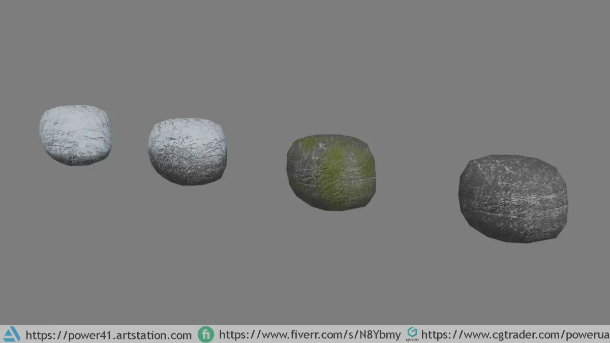 The stones are designed to fill the game level for winter or summer. Blender and Adobe Substance 3D Painter were used to create the level.Textures have a resolution of 2K