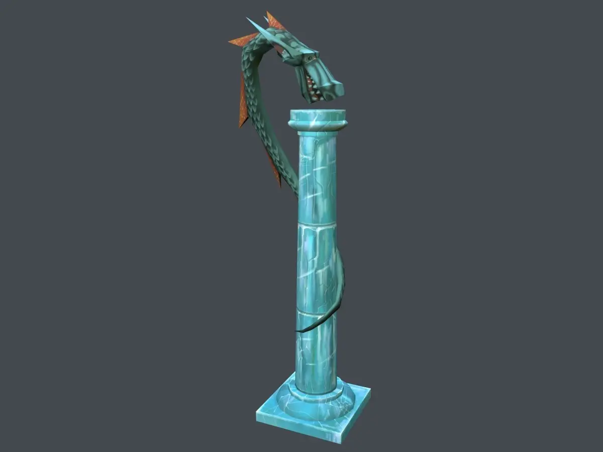 Add a professional touch to your game project with this low poly, hand painted Stylize Pillar Dragon. You should find this items easy to alter or reshape as needed or it can just be used as is.