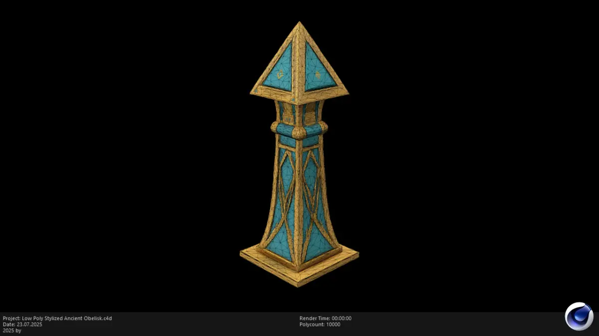 This is a stylized square-shaped obelisk model with a decorative, ancient-inspired design. The model features a unique color scheme with gold and turquoise accents, making it suitable for fantasy, historical, or stylized game and animation environments.