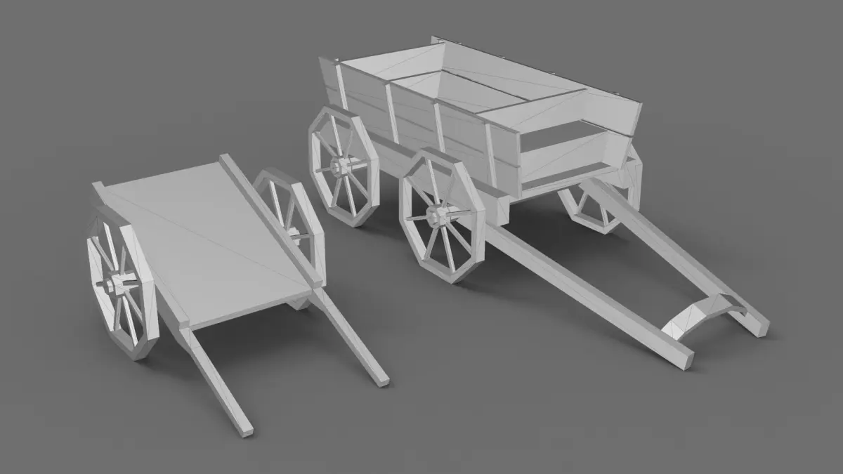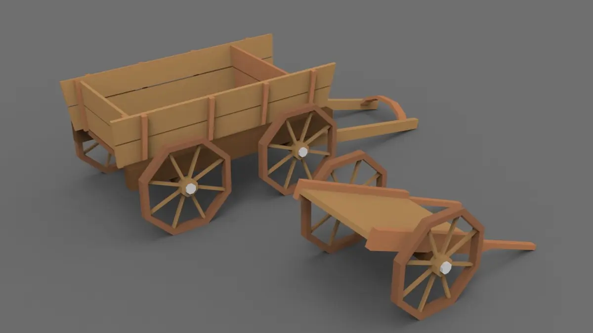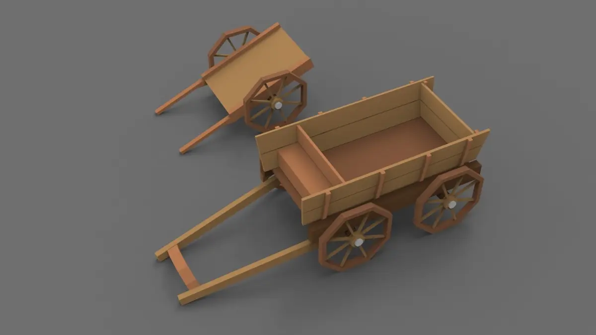 Low Poly Stylized Carts, Complete 3D Models in 1 Single Pack used for Game Ready and different Projects. The set includes two unique carts.