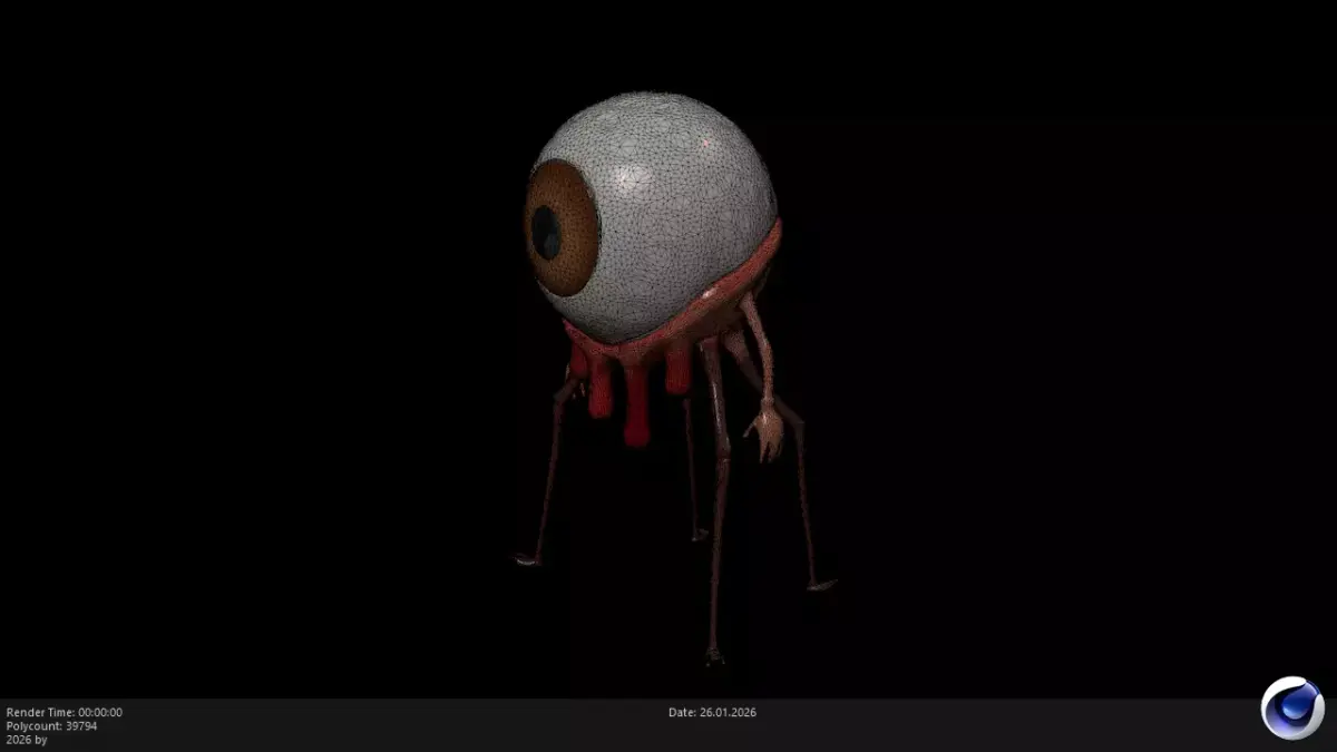 High-Quality Horror Fantasy Asset with Full PBR Support This is a professional, stylized 3D model of a creepy Eyeball Creature. Featuring a large, detailed central eye, bloody dripping flesh details, and spindly insect-like legs, it is perfect for horror games, dark fantasy environments, or as a unique enemy NPC. This model is built with a full PBR (Physically Based Rendering) workflow, ensuring realistic reflections on the eye surface and organic textures that react dynamically to light.
