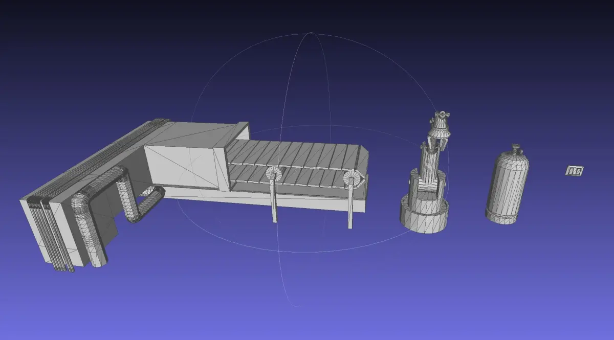 Some models you can use to populate your stylized factory. You will find a conveyor belt with many pipes and wires around it, a robotic arm, a gas cylinder, some switches.