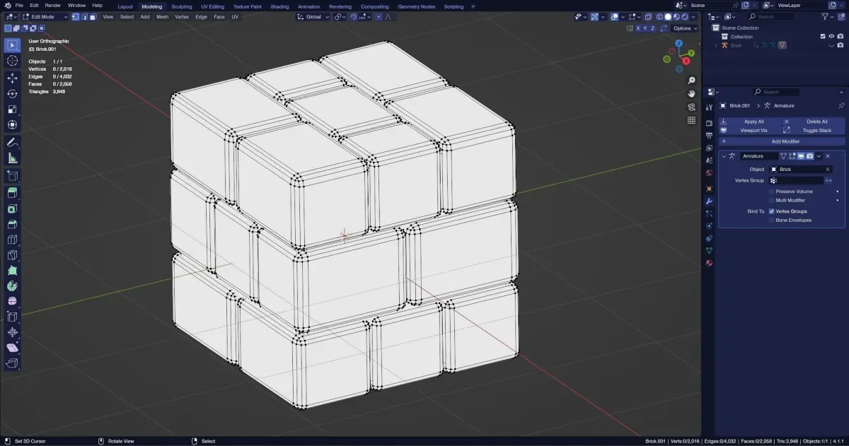 Subdiv 0 : Verts : 2,016 Faces : 2,058 Tris : 3,948