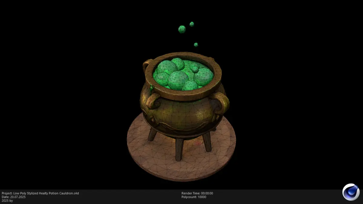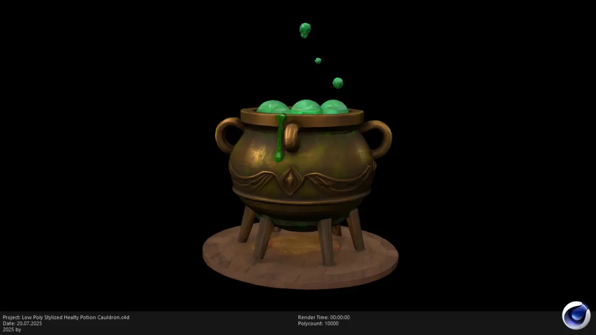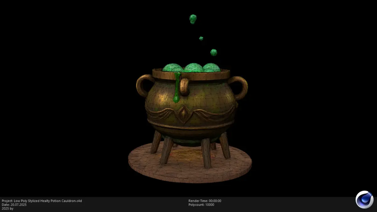 This is a Low Poly Stylized Healty Potion Cauldron 3D model designed for use in games, animation, and interactive media. With its whimsical hand-painted texture and magical aesthetic, this model is perfect for fantasy or RPG environments, especially suited for witch huts, potion rooms, and enchanted forests.