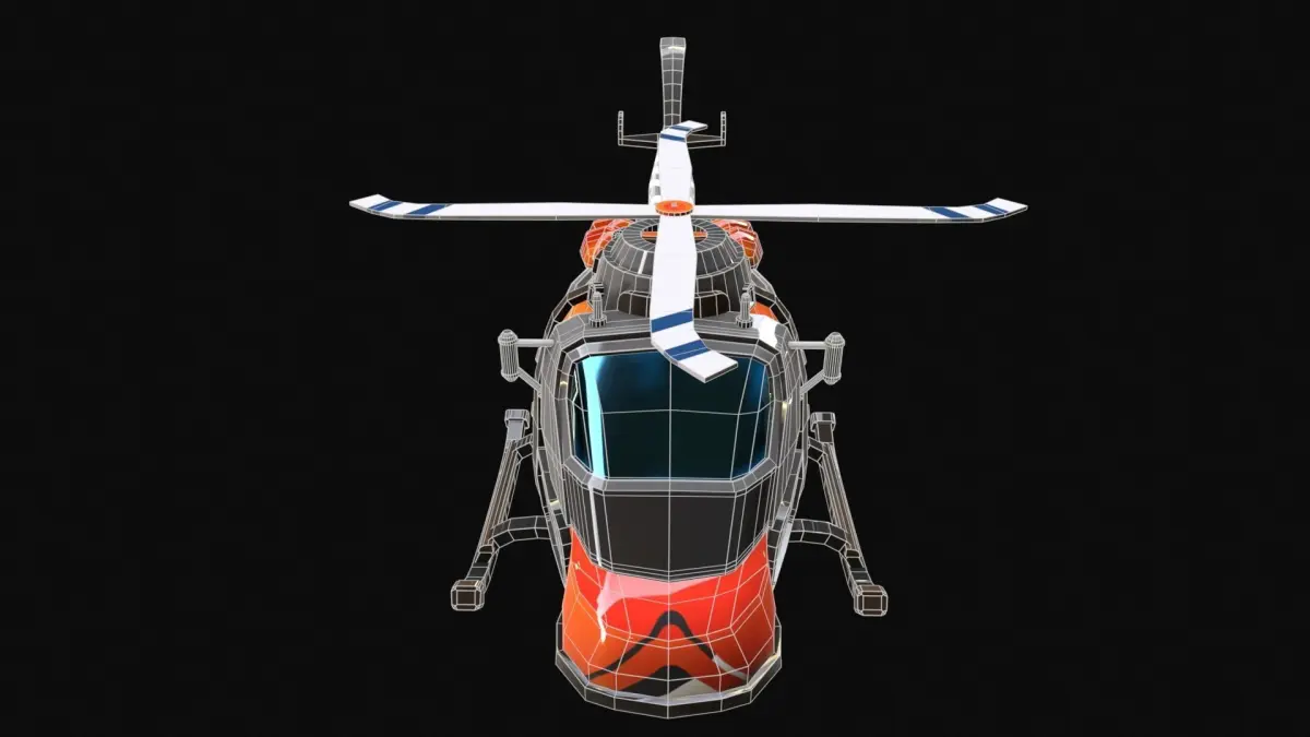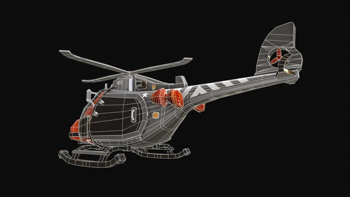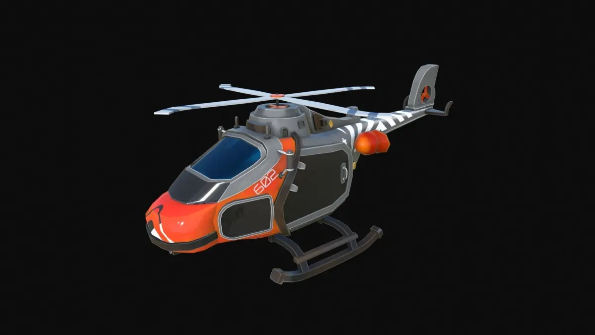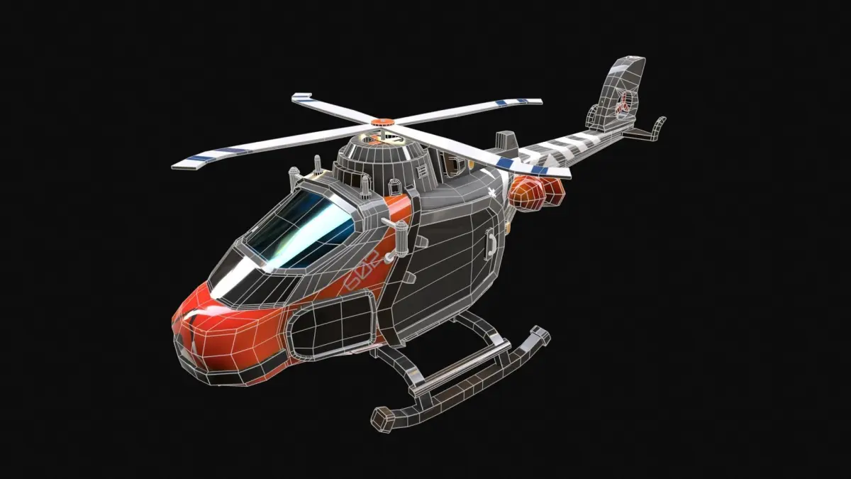 Stylized Helicopter with flawless detailed retopology, game-ready and low-poly.