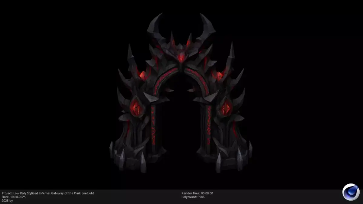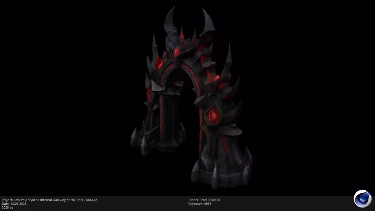 A stylized 3D model of a dark and menacing gateway, crafted from jagged obsidian and glowing with infernal red energy. This asset is perfect for dark fantasy, horror, or RPG game environments. The model is low-poly and game-ready, featuring a hand-painted texture.