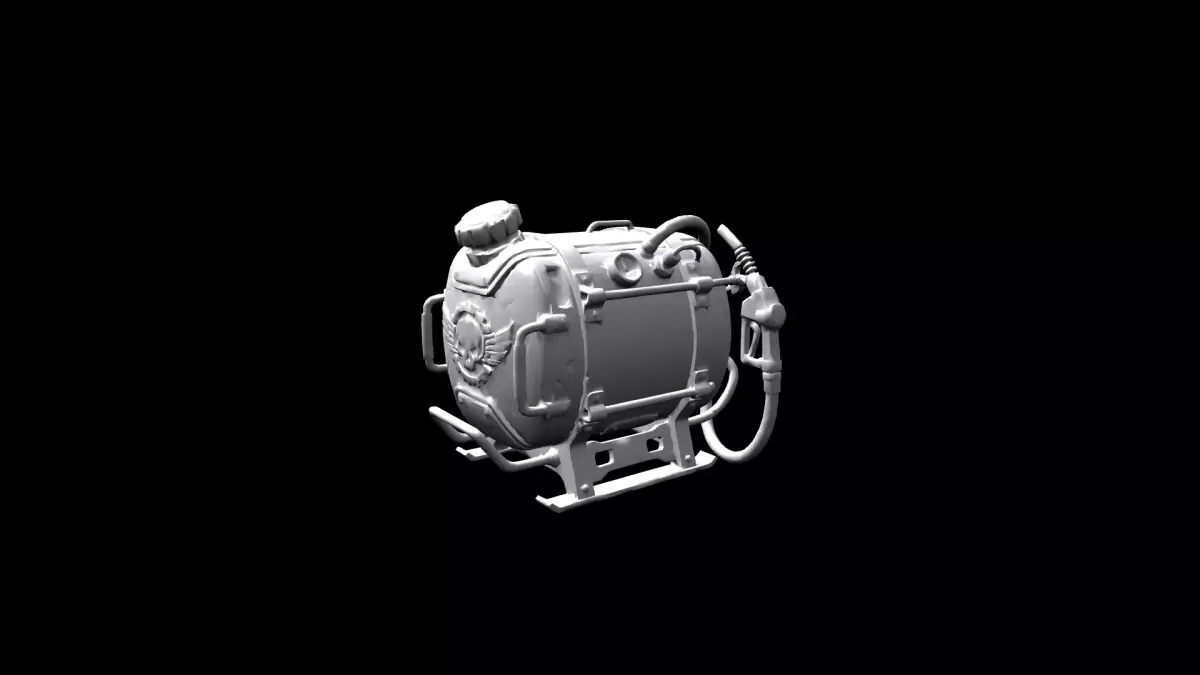 Key FeaturesDieselpunk Aesthetic: Features a custom Moto Fuel brand with skull iconography and weathered paint, providing rich environmental storytelling for wasteland or garage settings.