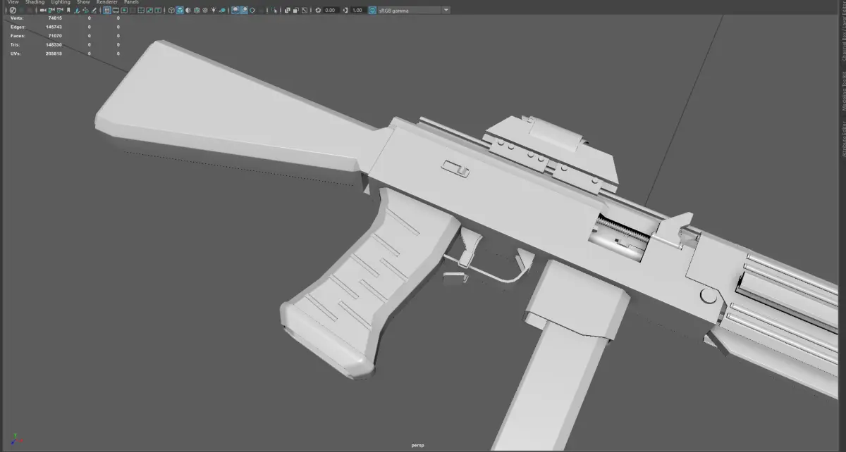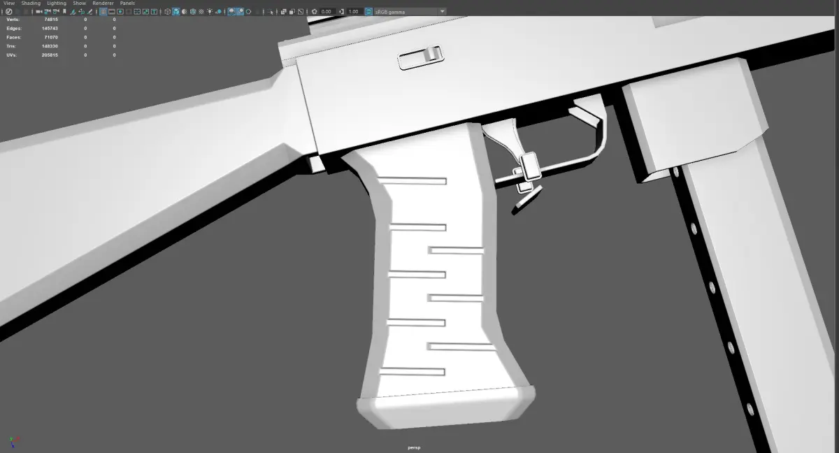 Low poly, game-ready submachine gun