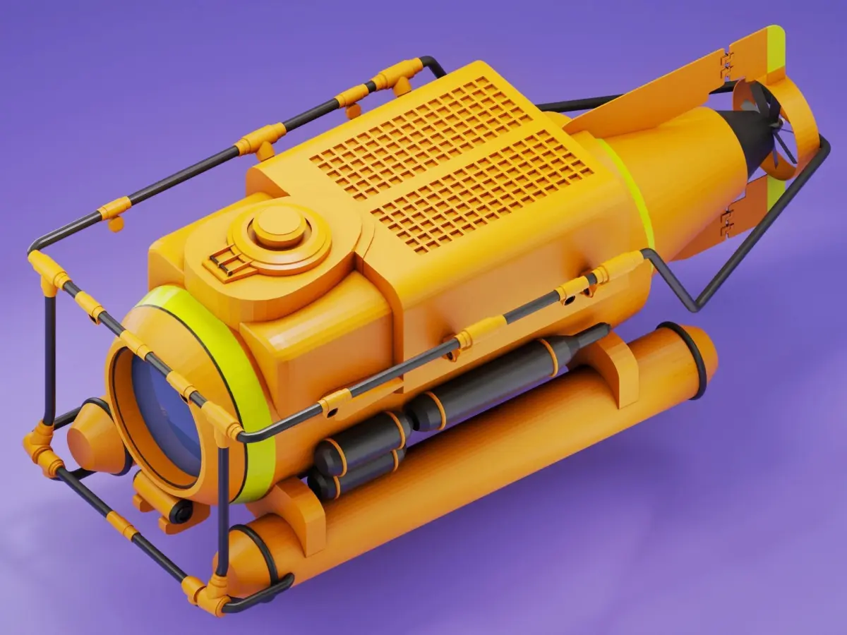 Low-poly, Detailed Submersible/Submarine 3D model, textured and UVW unwrapped