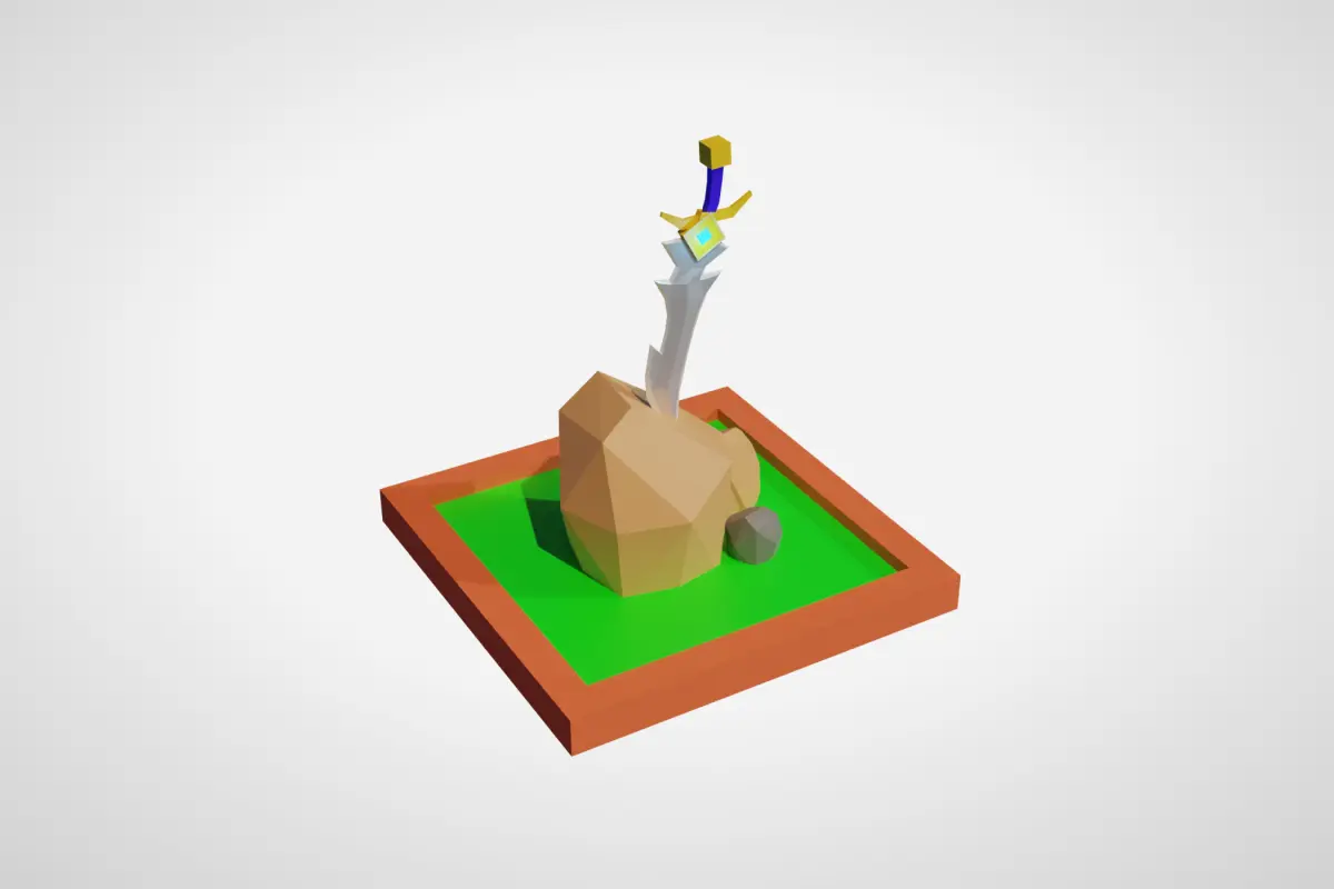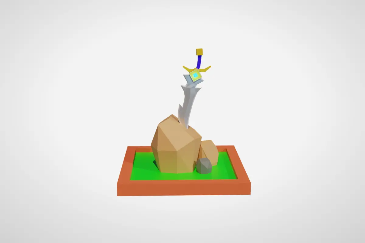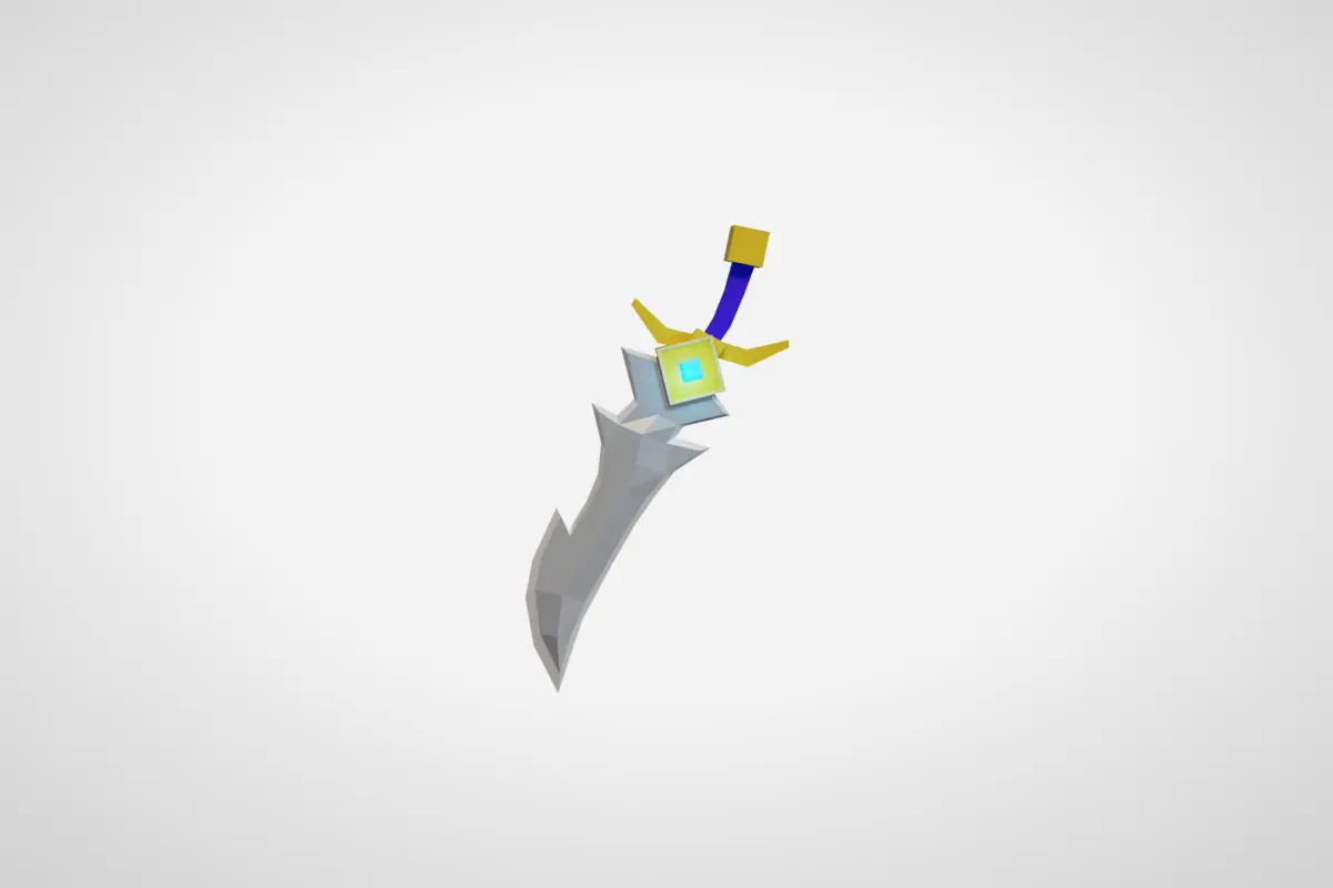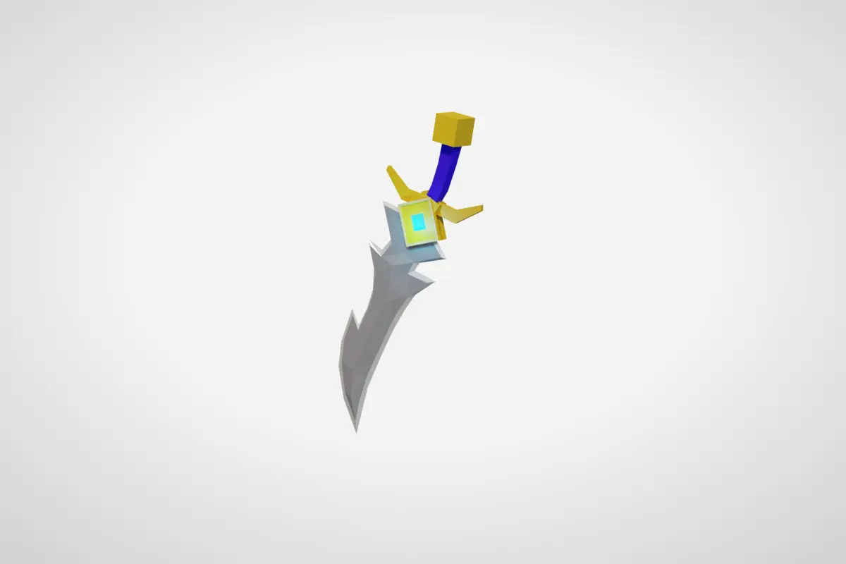 Design a low-poly sword in Blender with emphasis on simplicity and a distinct silhouette. Set up materials, optimize for performance, and ensure visual appeal in different lighting conditions. This is a 3D Model of a Sword. This Model is made using Blender 3.6.2, and all the Preview are rendered using Cycle. Using Blender matrials.