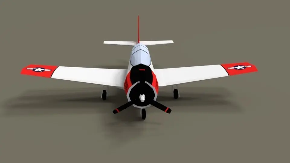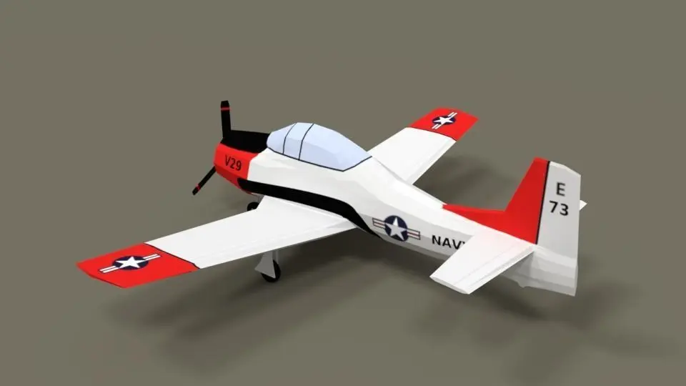 This is a low poly 3d model of a T-28 Trojan Training Airplane. The low polyT-28 Trojan Training Airplane was modeled and prepared for low-poly style renderings, background, general CG visualization. Clean topology (quads only) based on loop cuts ready for subdivide.