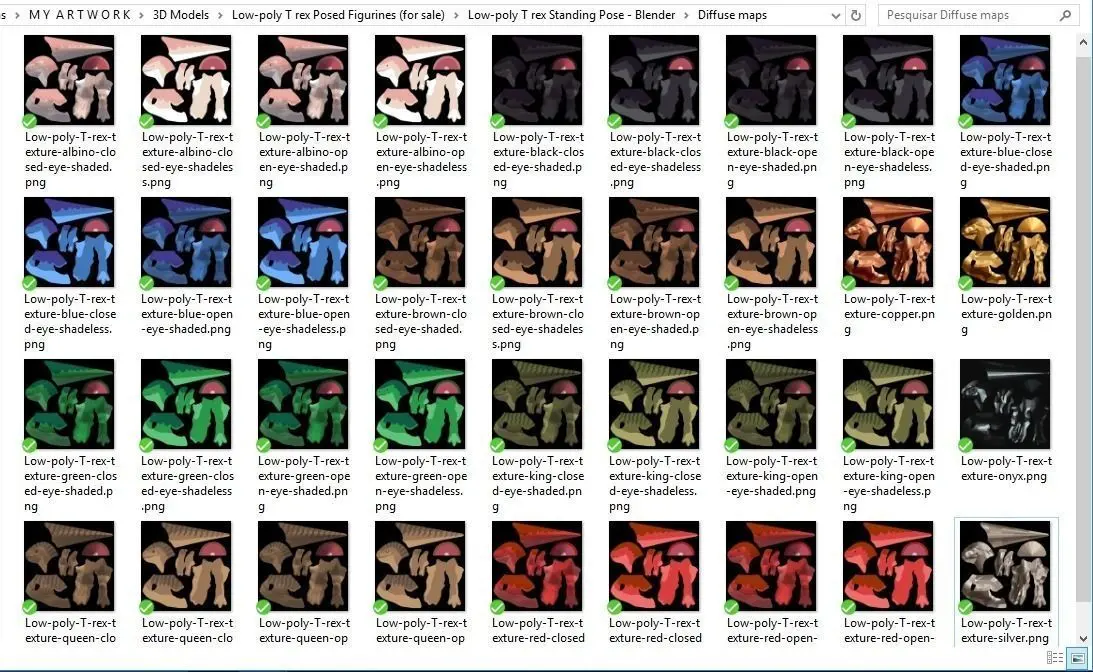 Low-poly 3D T.rex models, UV unwrapped, with diffuse textures, not rigged, static posed.