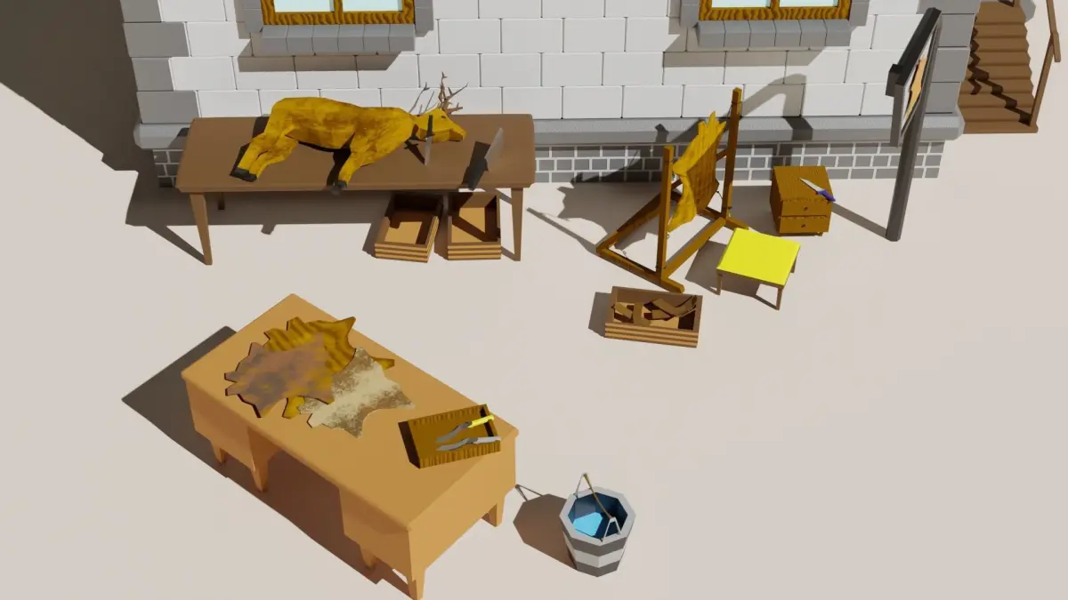 Low poly Tanner for games or advertising.Includes a tanner's shop and all the necessary tools to create products.does not contain.perfect for strategy games.build your village)vertices 38,460edges 67,038faces 29,708triangles 75,800