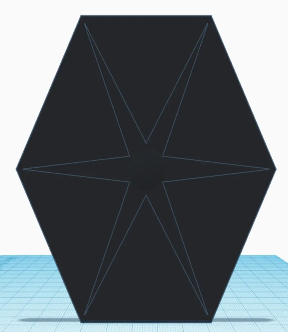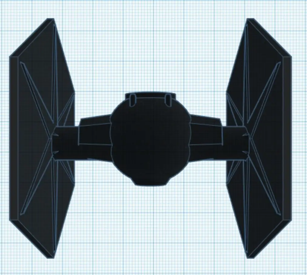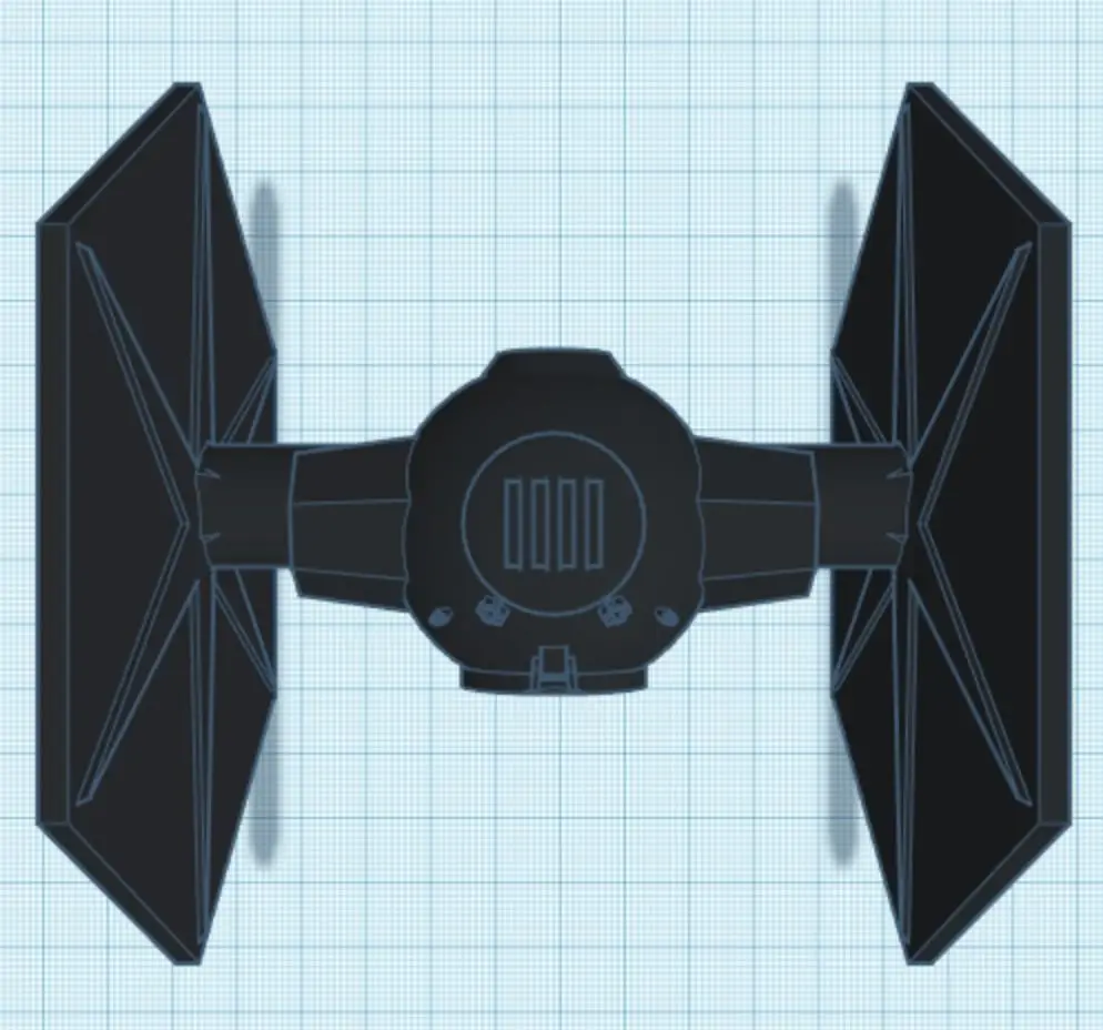 The Tie Fighter known for the multi-shaped window, its sphereical control center, and the two large hexagontal vertical wings on both sides. This model expresses each other these caracteristics in it's simplest form.