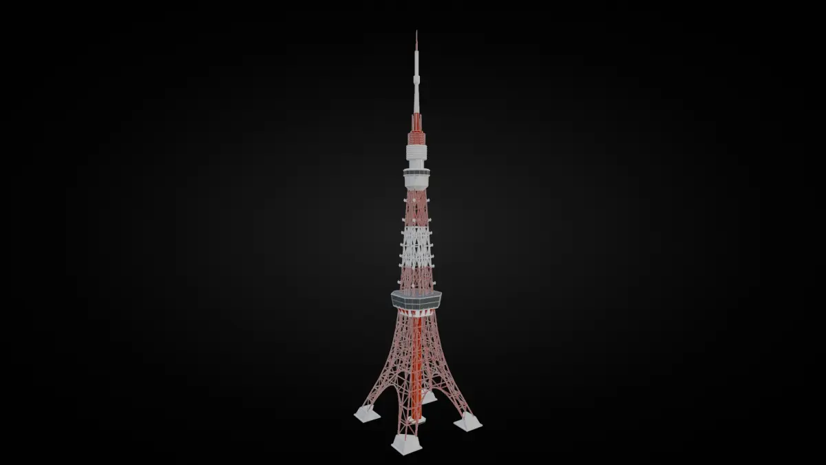 Tokyo Tower 3D Model - Category: Buildings - Triangles: 9,888 Tris (Low Poly) - Texture Resolution: 2048x2048 - Model Formats: FBX, OBJ, STL - Size: 2.1 MB - Texture Format: PNG - UV Mapped