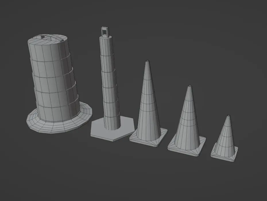 - Low Poly Traffic Cones of multiple sizes