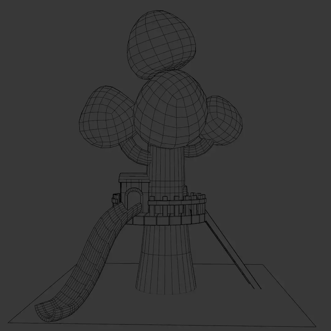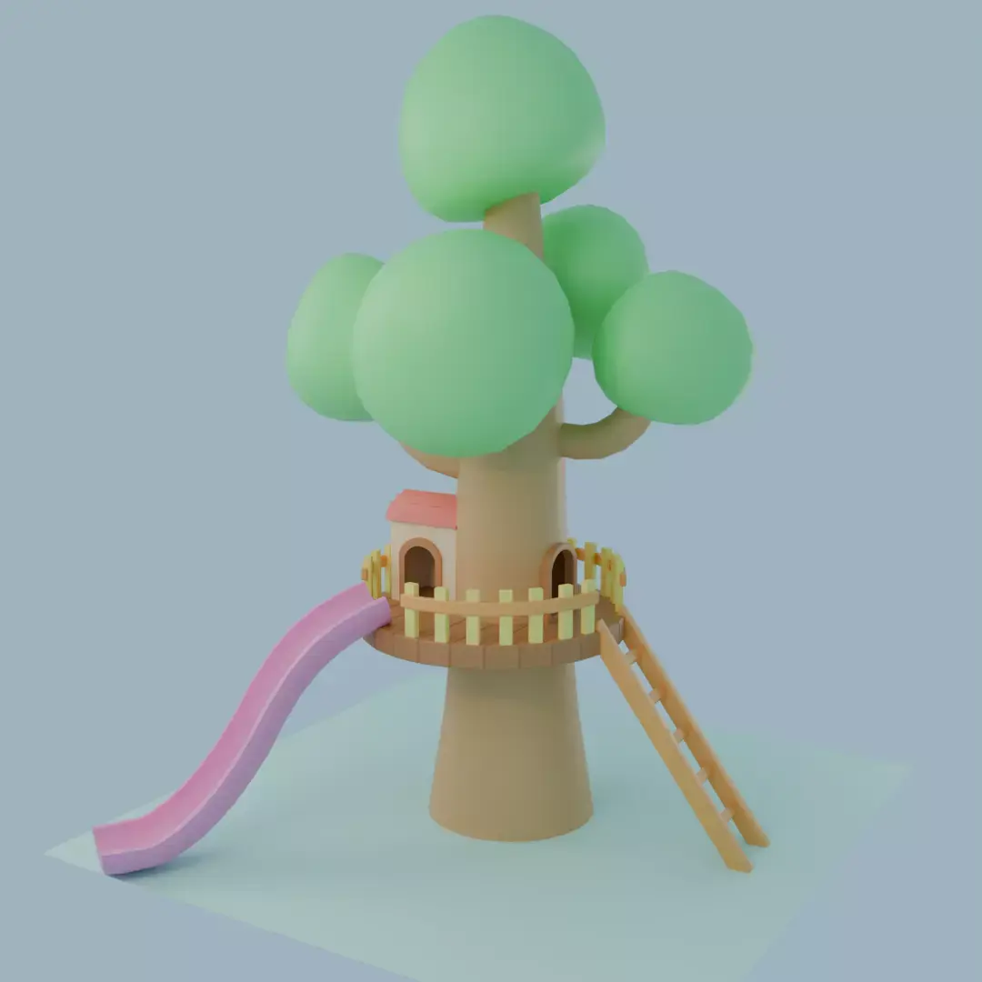 - Low poly, stylized tree house design