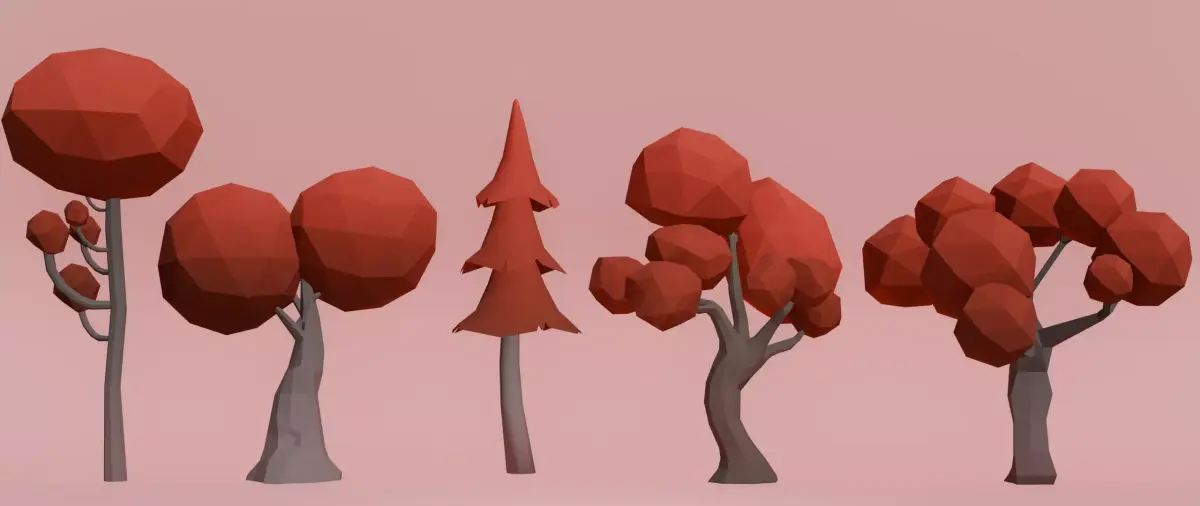 Low Poly 3D trees Bundle. All trees use a single png CollorGradientPallet material, minimizing draw calls and ensuring excellent performance while maintaining high visual quality. perfect for game development. The bundle includes trees designed to represent all four seasons, offering a diverse range of options for your projects, Spring Greens, Autumn Orange,Yellow,Red, Summer Dark Greens, Winter with Snow leaves.