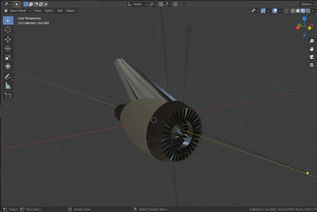 The low poly model of a turbofan engine. The turbofan or fanjet is a type of airbreathing jet engine that is widely used in aircraft propulsion. The word turbofan is a portmanteau of turbine and fan: the turbo portion refers to a gas turbine engine that achieves mechanical energy from combustion, and the fan, a ducted fan that uses the mechanical energy from the gas turbine to accelerate air rearwards