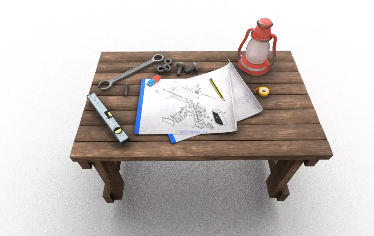 A detailed low-poly upgrade table designed specifically for crafting, smithing, or gear improvement mechanics in games. Ideal for RPG, Survival, or Workshop environments.