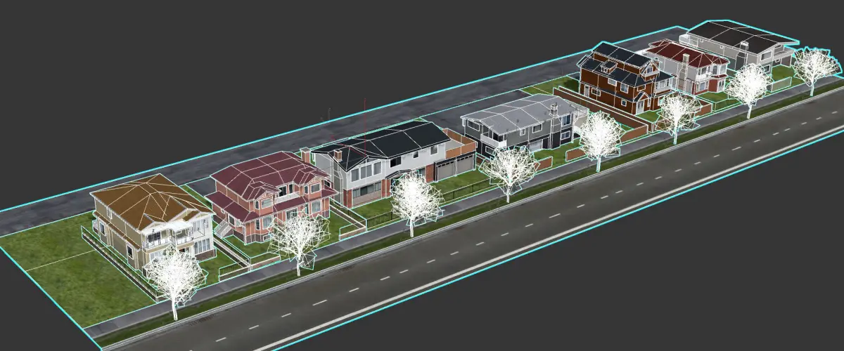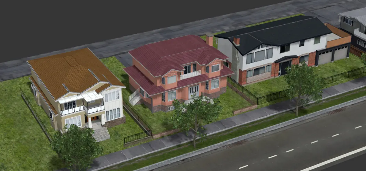 This is a collection of urban houses that you would find in a typical modern city. The textures were based off reference photos I took of my nearby neighborhood.