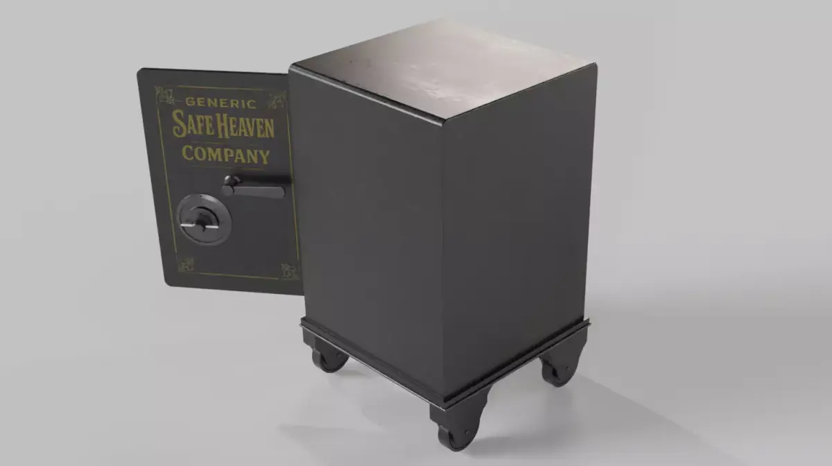 The safe features a sturdy metal body, a functional front door, and simple detailing that reads well from any gameplay camera distance. All UVs are neatly laid out with no stretching, and the texturing follows an optimized workflow to ensure fast loading times and easy material tweaks.