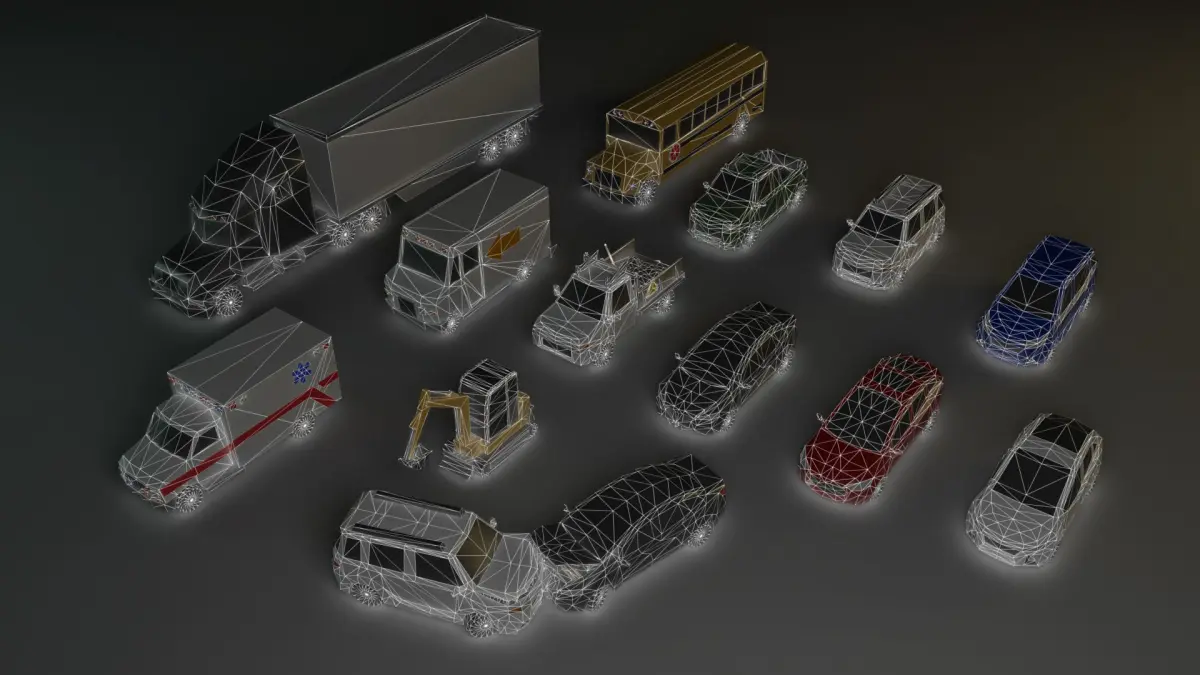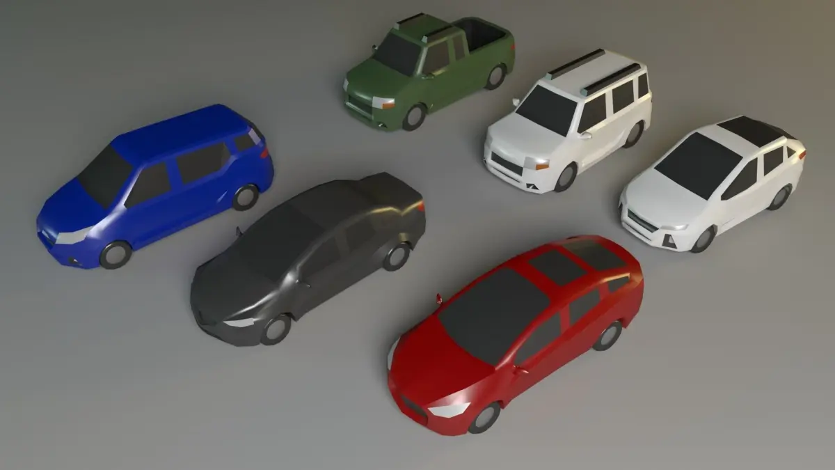 A set of 12 low-poly vehicles (plus a car crash). FBX and Maya Binary (mb) files included. Each car is UV's to fit a very simple, small texture file. Total Polygons for the whole set is around 20000, the average per vehicle is about 1200 triangles.