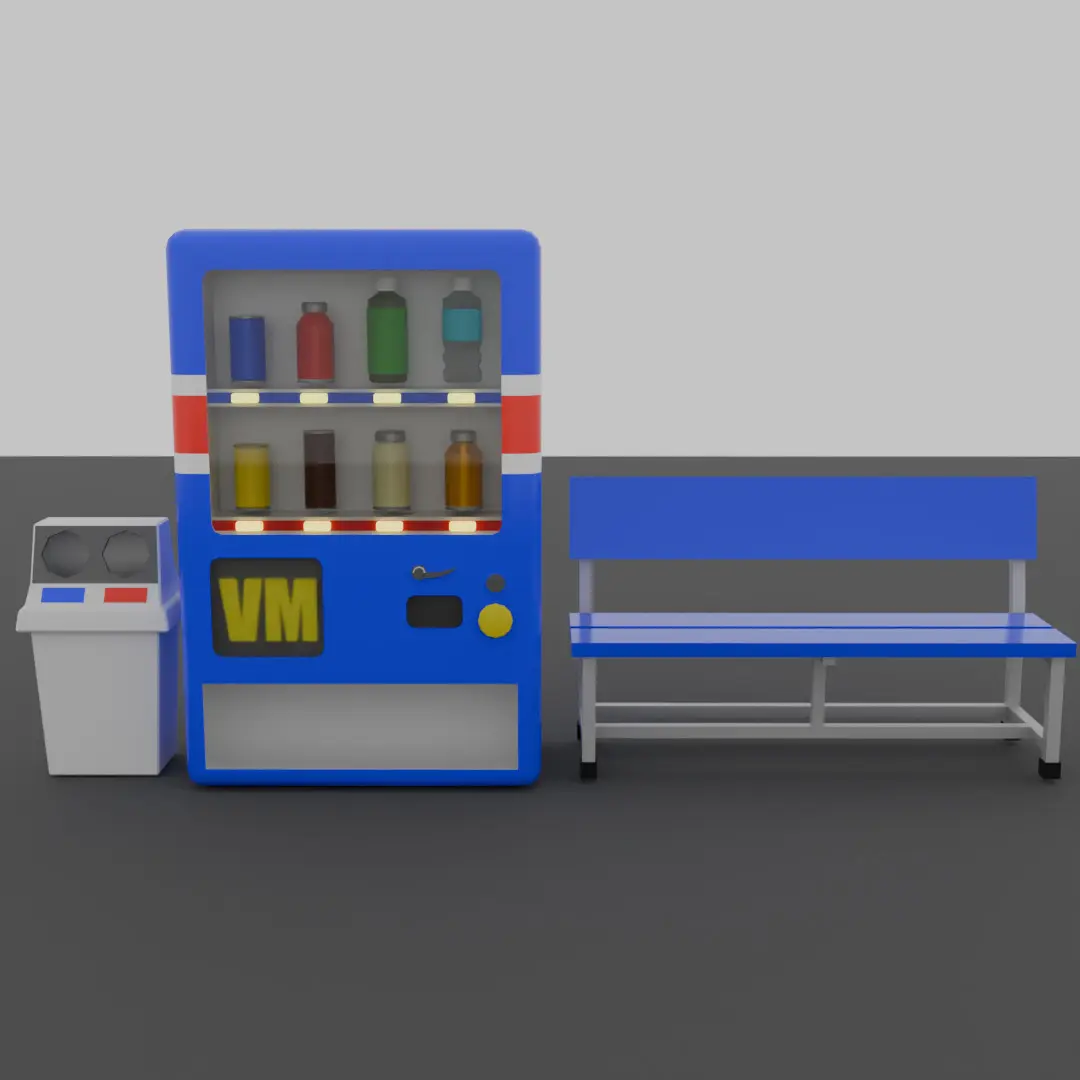 Here comes a pop and friendly low-poly style vending machine set! Carefully modeled in Blender, this set creates the perfect atmosphere for games and anime-style 3D productions.