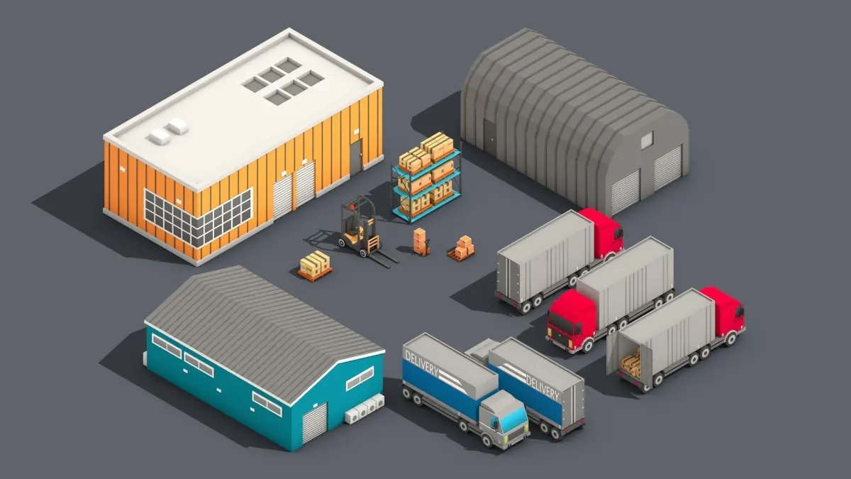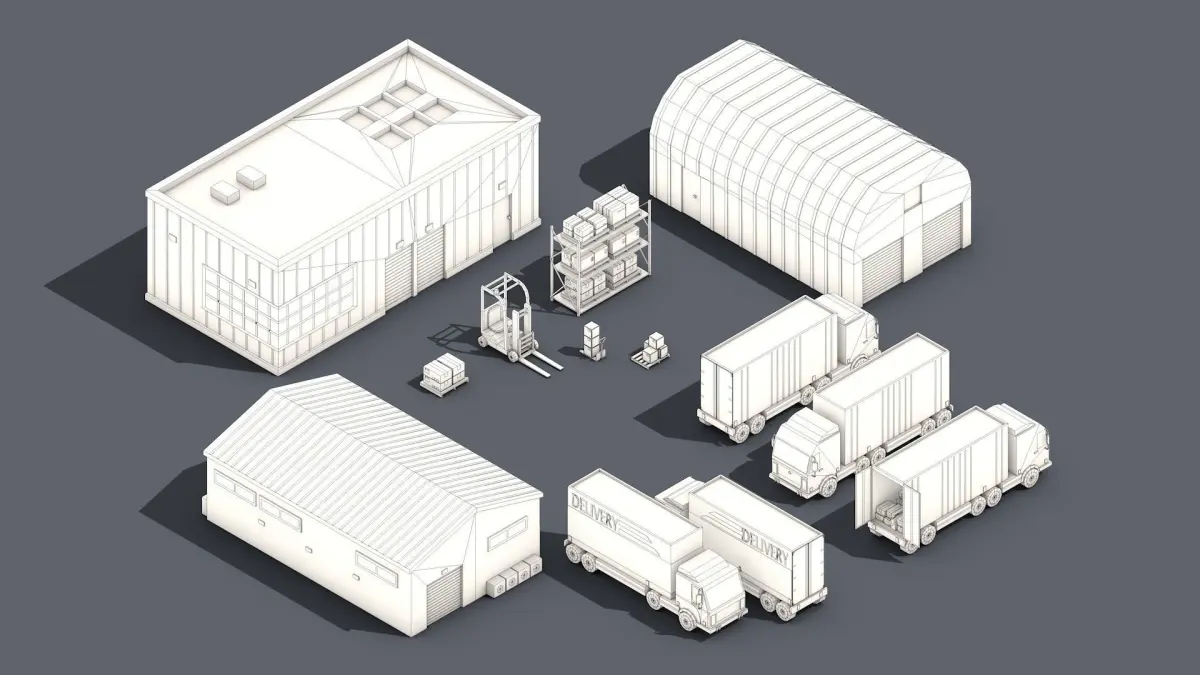 Rendering standard in Cinema 4D. Texture file size(2048*2048), You can easily adjust the color by dragging the uv. Model ready for game, render, motion graphics..e.t.c. This package contains cardboard wood pallet, forklifts, goods shelves, hand pallet truck, truck, truck delivery, warehouse building.