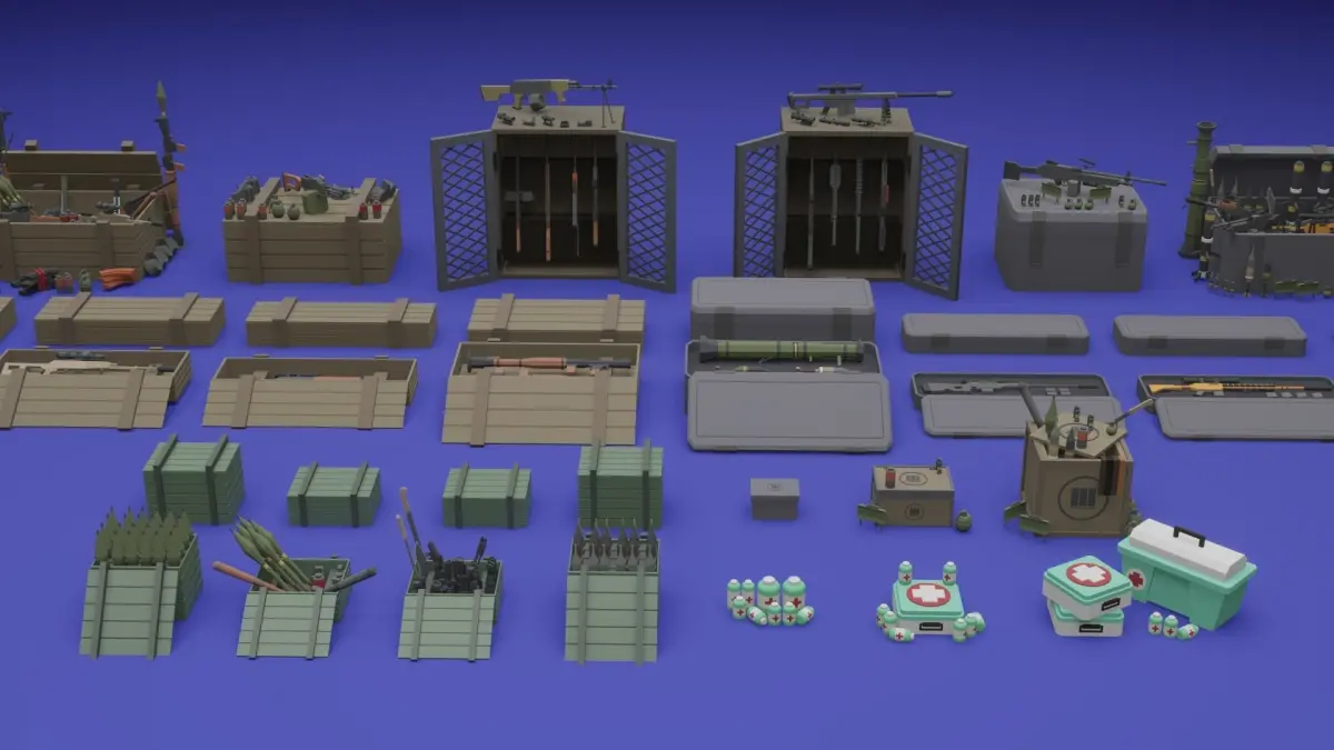 Buy Low Poly Weapon And Container Assets Low-poly 3D model