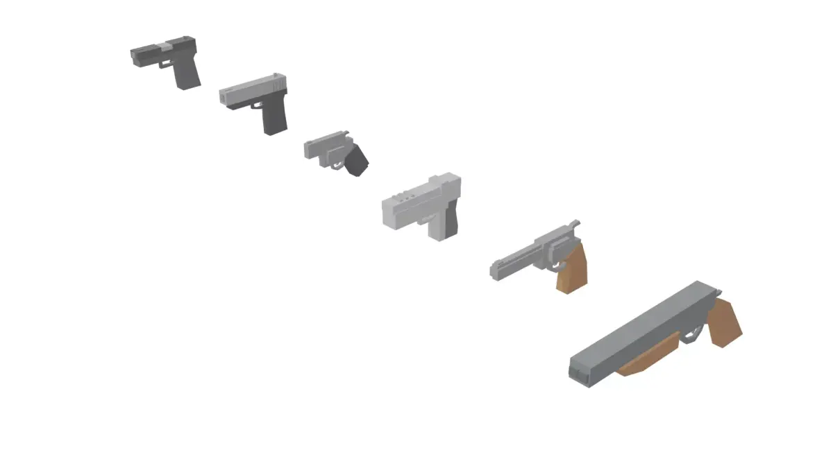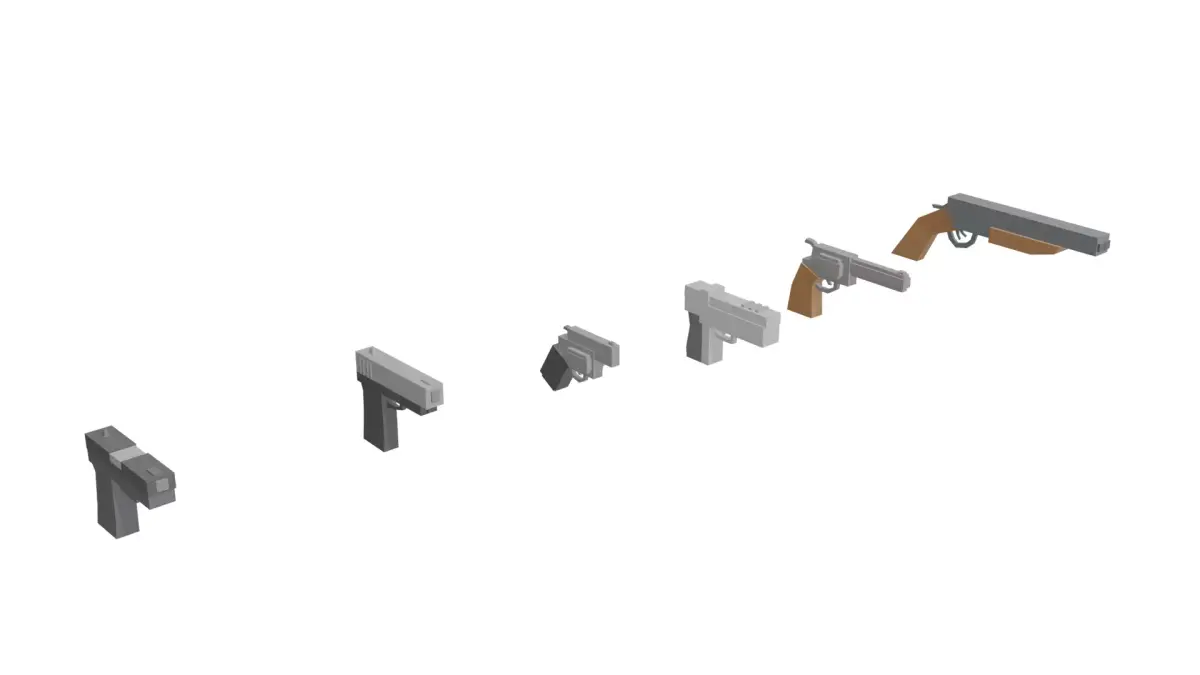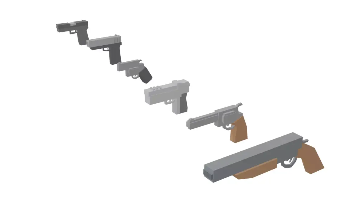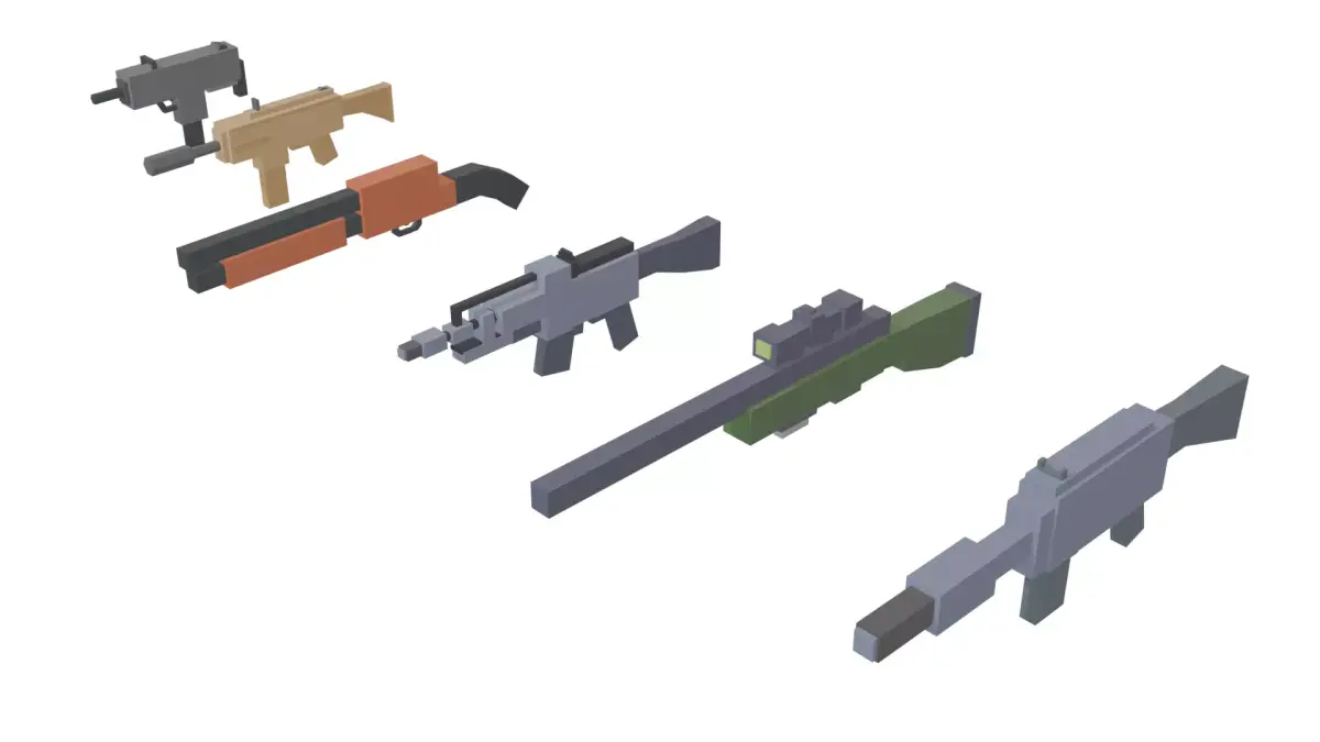 A stylized low poly weapon pack featuring 25 unique gun models, perfect for FPS, arcade shooters, roguelikes, and Roblox-style games.Designed with simple geometry, clean silhouettes, and optimized topology — ideal for game-ready use and easy customization.
