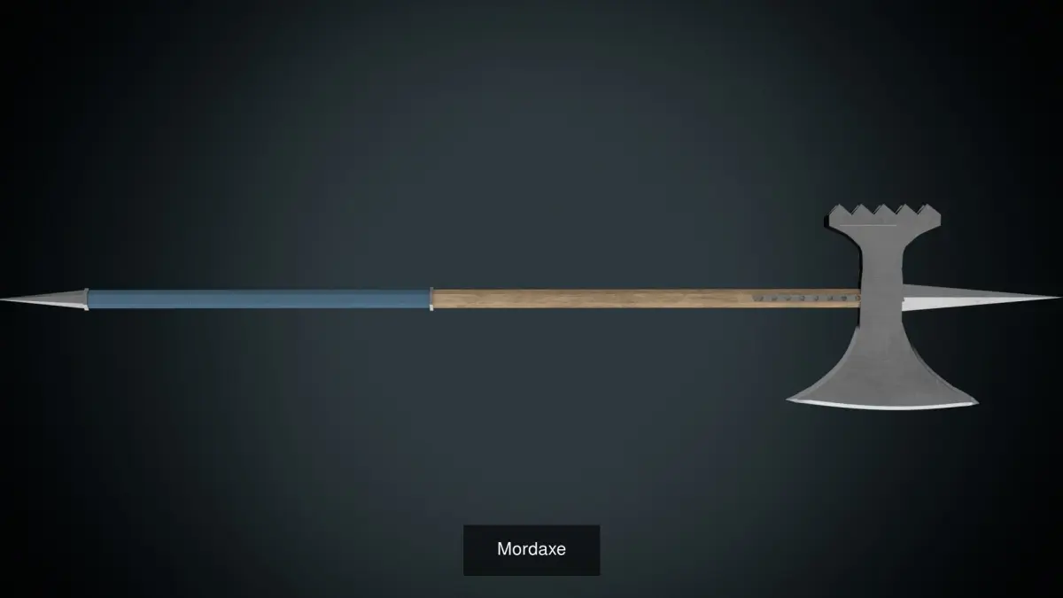 The weapons have a veriety frome axes, swords, helbards, hammers etc.