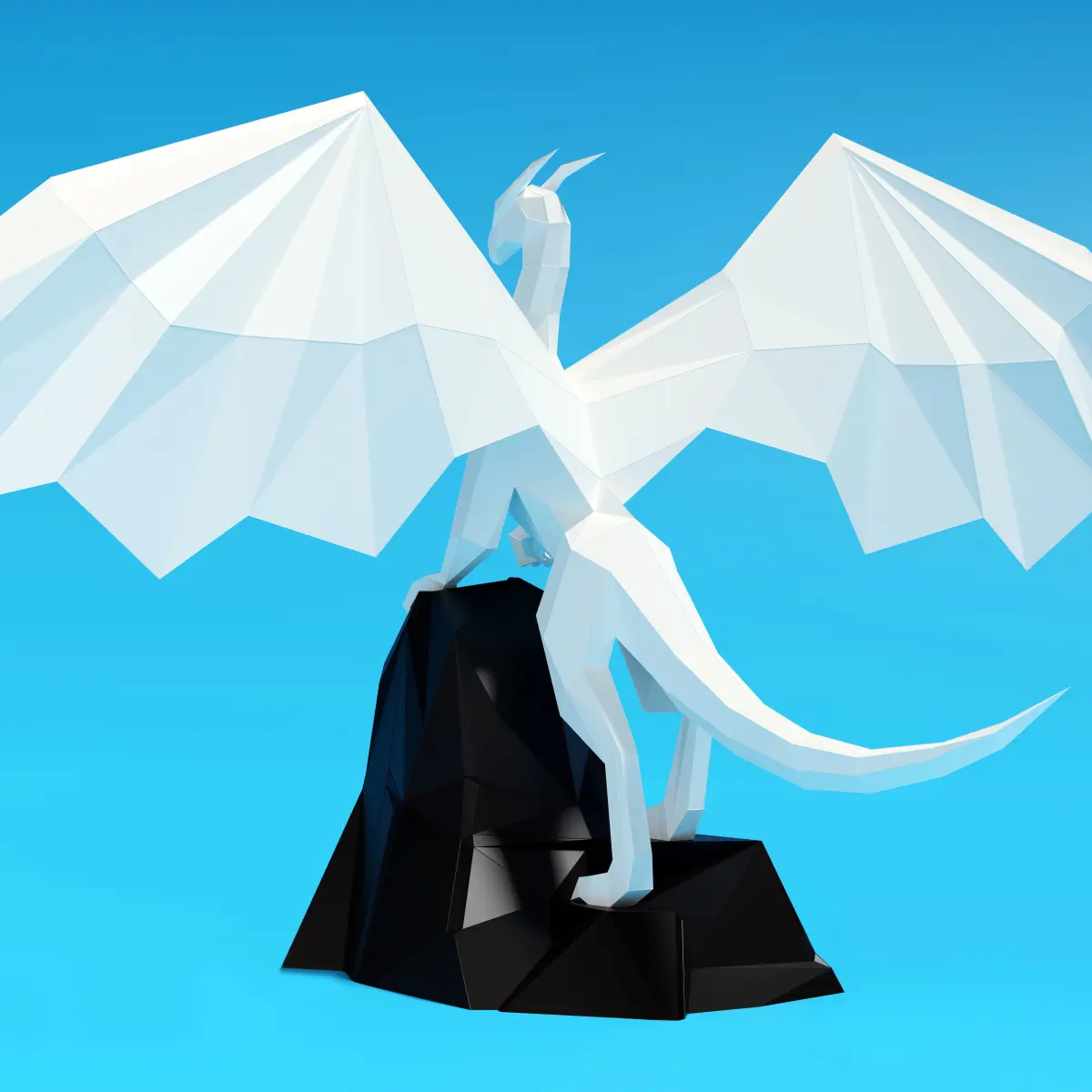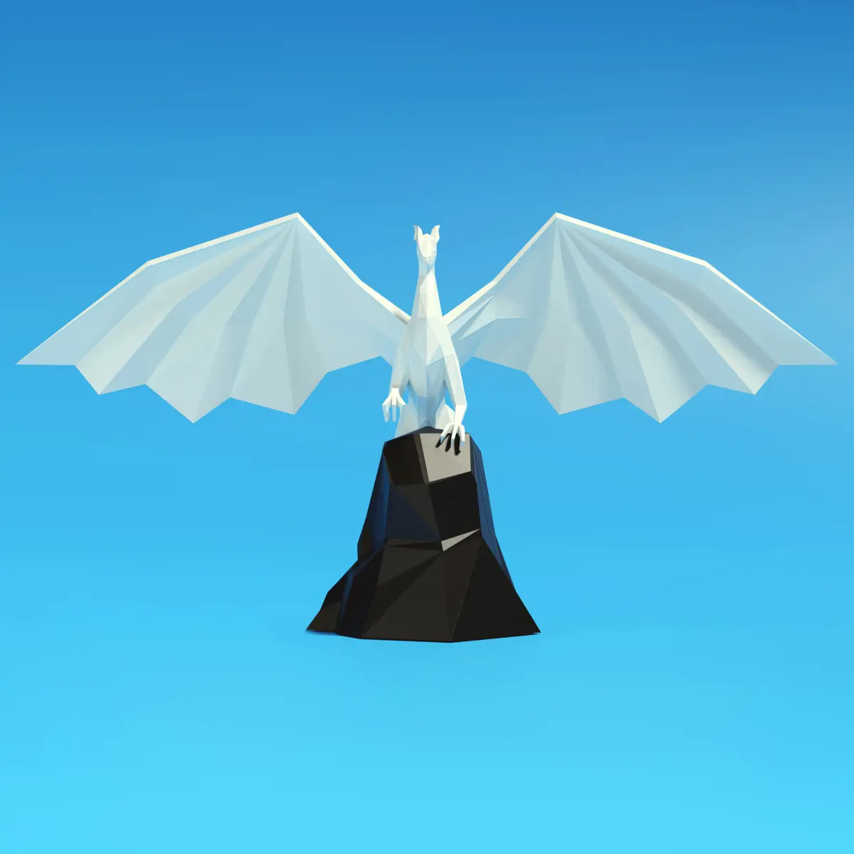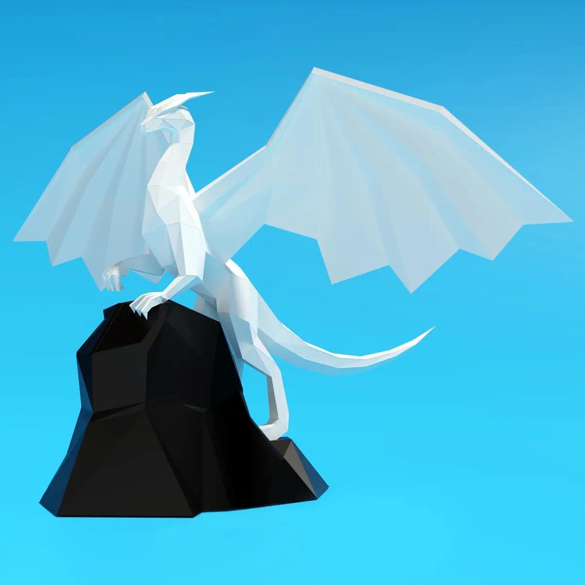 A low poly White Dragon on the rock. Great for papercraft! Includes .BLEND, .OBJ and .FBX file types.