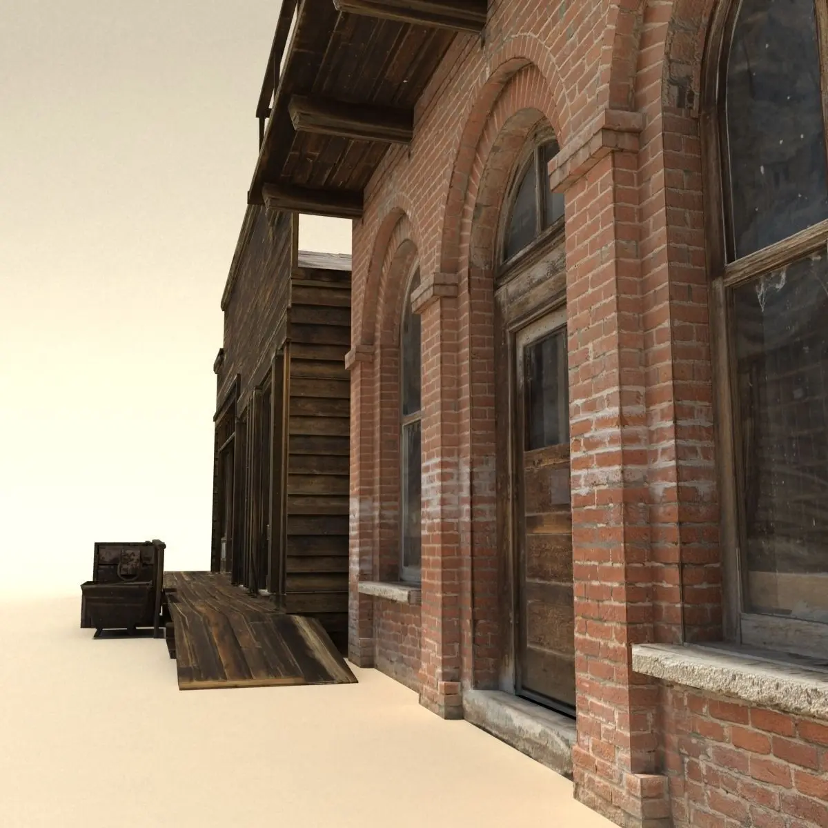 A 3D model of Old Wild West buildings.Product's features:- Eesolution of textures.:main: 3673x4096, 6460x7741box: 662x441 pxbush: 962x532, 577x593fence: 2048x1642